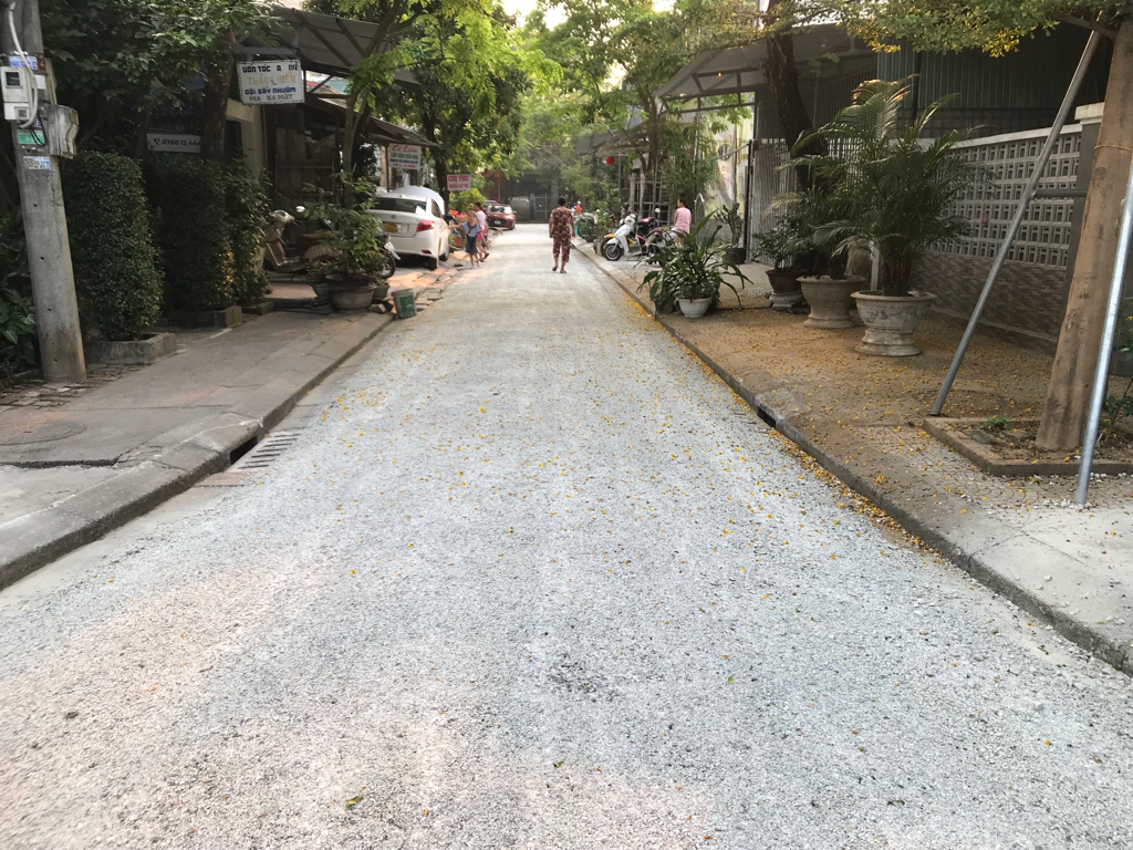Hiện nay, đơn vị duy tu đang thực hiện sửa chữa lại mặt đường một số tuyến trong KQH, trong đó có ngã tư Mai Khắc Đôn - Nguyễn Phúc Thái và kiệt 5 Nguyễn Phúc Thái theo kết cấu mặt đường láng nhựa 2 lớp trên mặt đường cũ là phù hợp với mức độ hư hỏng, kết cấu hiện trạng.