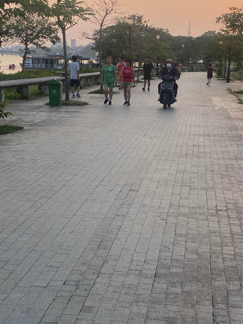 Hiện nay, thời tiết nắng nóng nên người dân đến các khu vực dọc sông Hương hóng mát càng nhiều, Trung tâm đã bố trí bảo vệ thường xuyên kiểm tra công tác trật tự tại lối đi bộ dọc sông Hương đến phía sau Học viên Âm nhạc để nhắc nhở người dân không tổ chức ăn nhậu, ngăn không cho xe máy, xe đạp điện chạy vào lối đi bộ gây ảnh hưởng cho người đi bộ. Về phần cây đổ và điện chiếu sáng Trung tâm sẽ xử lý kịp thời để đảm bảo cảnh quan đô thị; đính kèm hình ảnh.