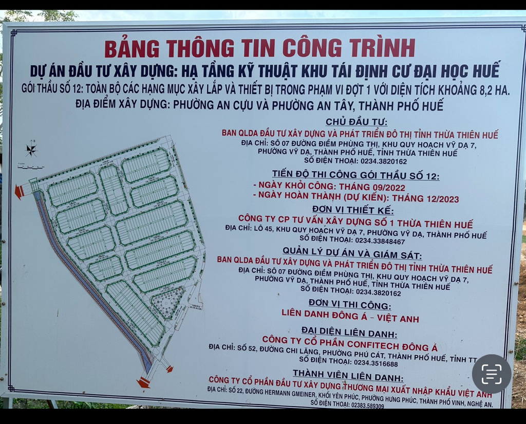 Vấn đề nội dung phản ánh của Ông/Bà ngày 23/4/2024 về việc: “1. Dự án khu tái định cư đại học Huế dậm chân tại chỗ, không 1 bóng người thi công. Cuộc sống bà con 20 năm nay mang tiếng thuộc thành phố nhưng quá khổ sở, đường xá thua cả đường nông thôn (kèm hình ảnh bên dưới). Kính đề nghị chủ đầu tư là Ban QLDA đầu tư xây dựng và phát triển đô thị tỉnh xem xét lại vai trò trách nhiệm của mình trong việc để xảy ra chậm trễ của đơn vị thi công và có phương án đôn đốc thực hiện dự án. 2. Đường Nguyễn Hữu Cảnh cũng thuộc dự án trên nhưng cũng chưa thấy động tĩnh gì, hơn 20 năm chờ đợi rồi hi vọng...chúng tôi dần mất niềm tin với các lời hứa hẹn...”. Về nội dung phản ánh của quý Ông/Bà, Ban QLDA Đầu tư xây dựng và Phát triển đô thị tỉnh xin trả lời như sau: