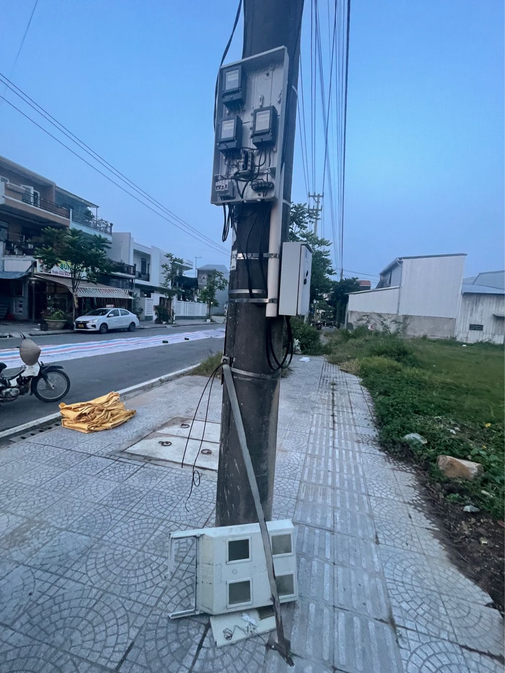 Sáng nay 04/5/2024 mưa gió to nên nắp bảo vệ các công tơ điện ở cột điện nhìn xéo quán bún Na đường Tạ Hiện, phường Hương Sơ bị rơi xuống đất, để vậy rất nguy hiểm khi gặp các cơn mưa tiếp theo. Nên đề nghị Công ty Điện lực cho khắc phục ngay. Xin cảm ơn.