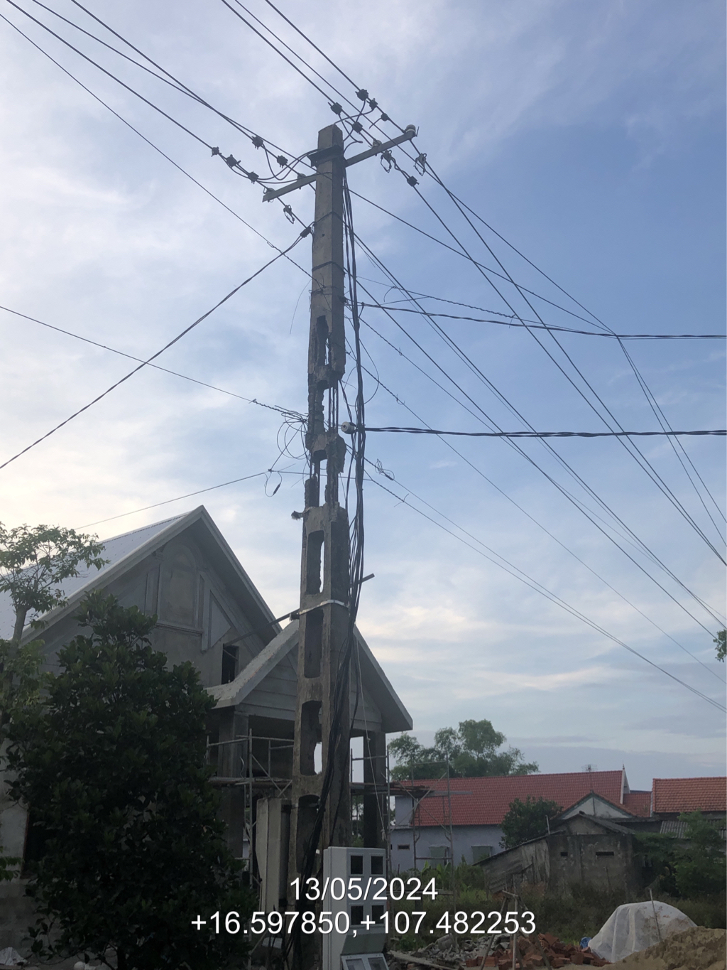 5 vị trí cột điện tại Đội 4, thôn Thuỷ Lập, xã Quảng Lợi, huyện Quảng Điền, tỉnh Thừa Thiên Huế hư hỏng nặng (có vị trí tọa độ tại mỗi hình ảnh) kính đề nghị Điện Lực Thừa Thiên Huế giải quyết để đảm bảo an toàn cho người dân