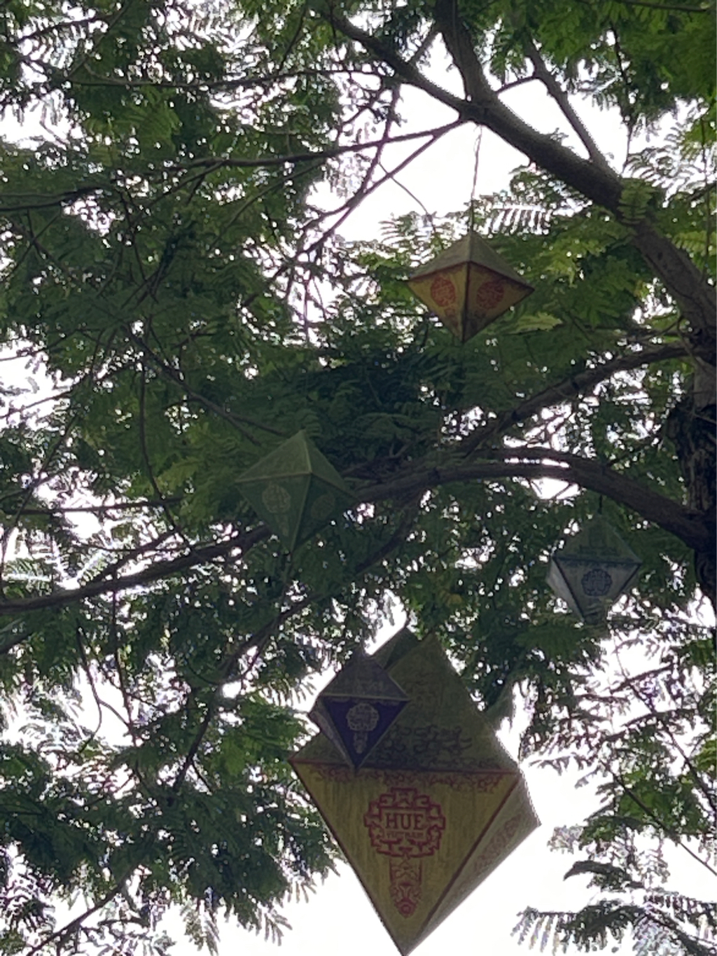 Mong cây xanh tới chặt nhánh cây này tại 49 Lê Huân, phường Thuận Hoà, thành phố Huế. Hôm qua gió to nên nhánh cây to này có dấu hiệu đã gãy và dây điện đèn bao quanh nhánh gây nguy hiểm. Kính mong cơ quan chức năng sớm kiểm tra, xử lý (ảnh ngày 14/5/2024)