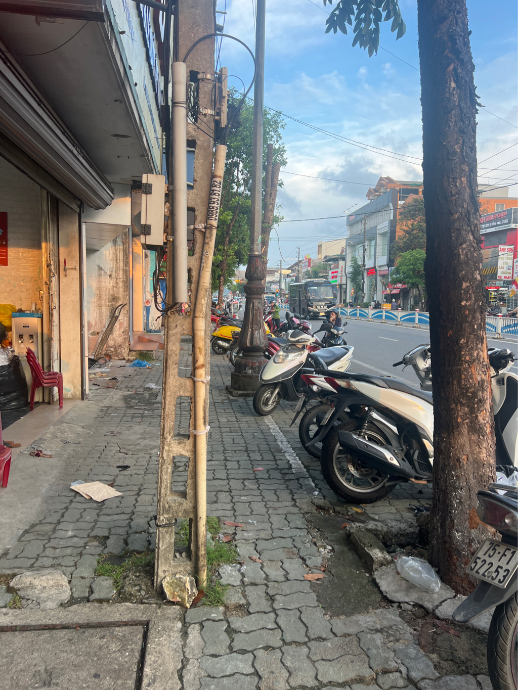 Hiện tại trước số nhà 47 An Dương Vương, phường An Đông, nằm trên tuyến đường đang được chỉnh trang đô thị lót gạch vỉa hè mà sao các cấp không cho hạ cáp điện thoại xuống chạy ngầm luôn mà vẫn còn cột viễn thông rất mất mỹ quan cản trở người đi bộ. Kính mong lãnh đạo các phòng ban quan tâm đến tuyến đường An Dương Vương để tạo mỹ quan thông thoáng cho bộ mặt thành phố.