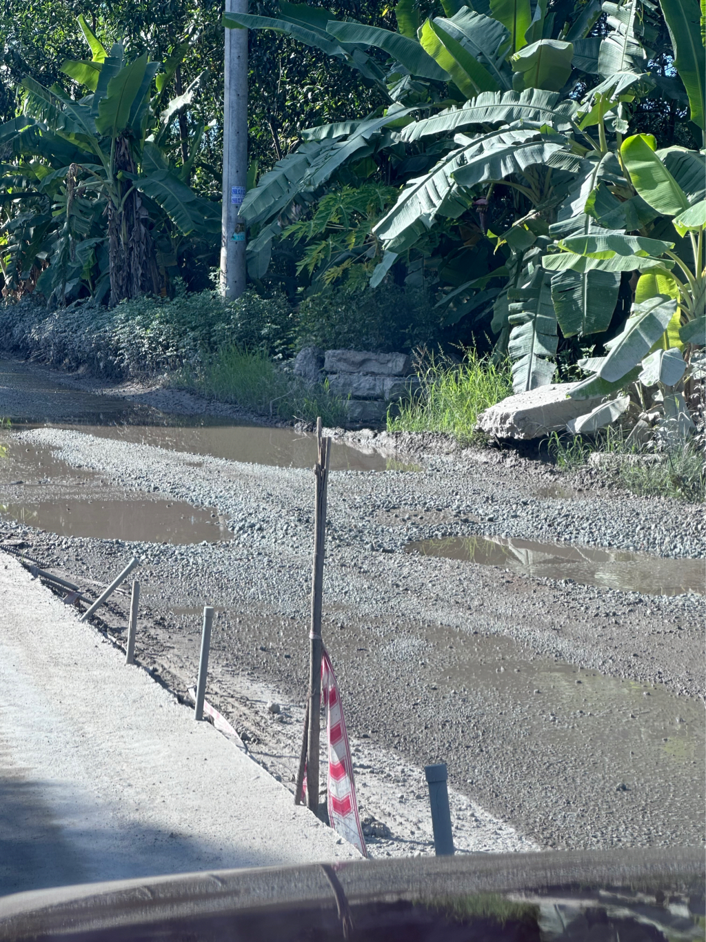 Đoạn đường Tỉnh lộ 10 giao nhau với đường Văn Xá thuộc phường Hương Văn, thị xã Hương Trà chậm thi công. Ổ voi đường lồi lõm gập ghềnh dễ gây tai nạn. Đề nghị xử lý.