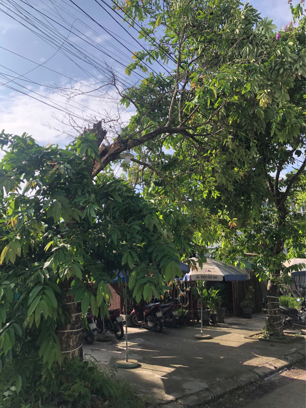 Cây ở đường Thân Trọng Di, Hương Sơ bị gãy, ngã vào dây điện dễ gây đứt dây điện. Kính nhờ công ty cây xanh nhanh chóng xử lý. Địa chỉ cây bị gãy tại số nhà 30 đường Thân Trọng Di, Hương Sơ, Huế.