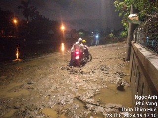 Đoạn đường Nguyễn Đình Bảy TDP Ngọc Anh phường Phú Thượng TP Huế không có lối đi tạm cho dân, không có biển báo hiệu làm dân bị lầy. Xin trả lại đường cho dân đi.