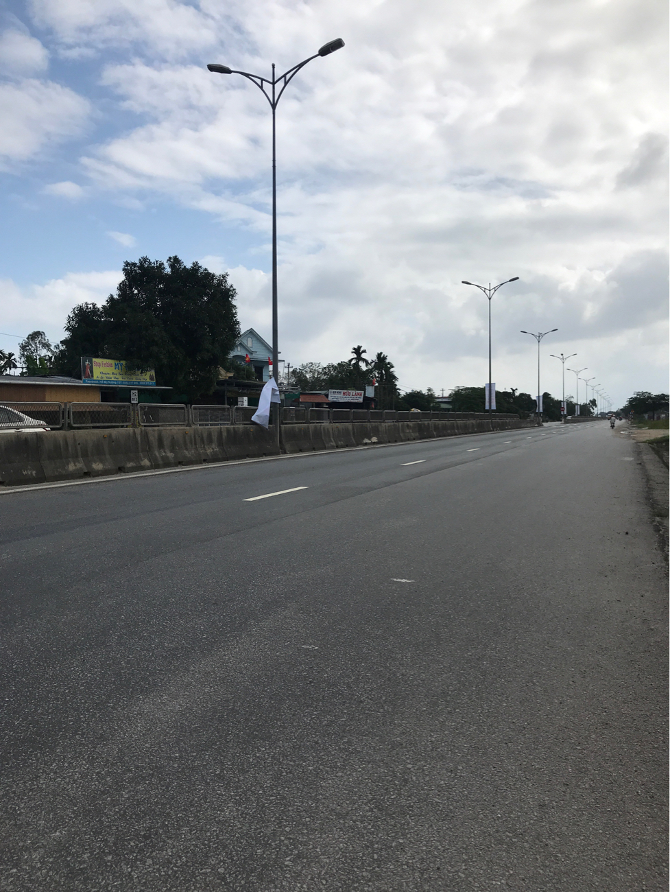 Treo quảng cáo dọc đường quốc lộ bị đứt dây rất nguy hiểm