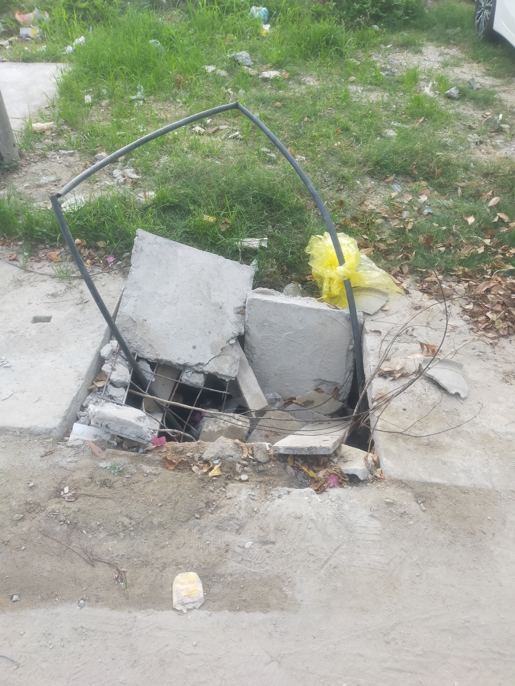 Hiện nay tại đoạn đường xóm 3 Ngọc Anh, phường Phú Thượng xe trộn bê tông ra vào nhiều lần làm bể tấm đan đậy nắp cống hơn 15 ngày nay. Vì không có nắp đậy, rất nhiều vụ tai nạn đã xảy ra. Thậm chí có cả người và xe rơi xuống cống. Đề nghị chính quyền địa phương xử lý làm lại nắp cống cho người dân. Hình ảnh ghi lại ngày 19/06/2024.