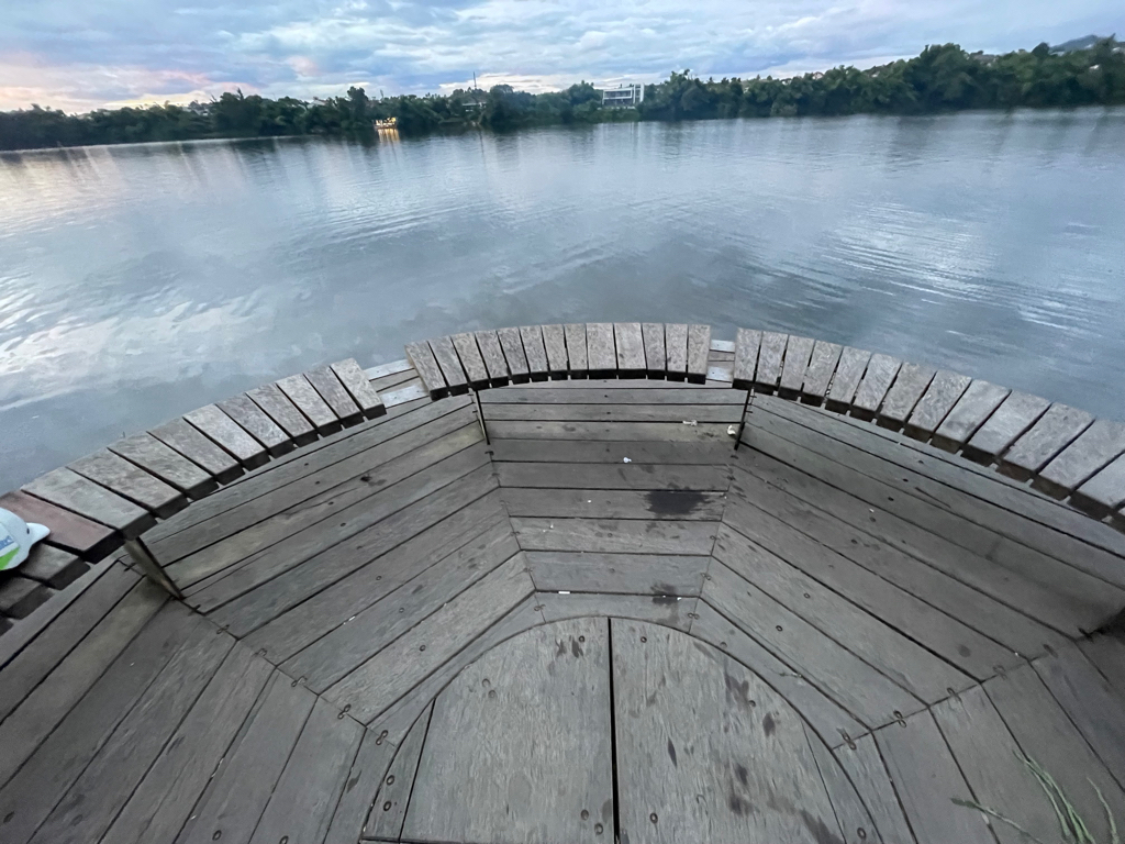 Ghế gỗ hình tròn bên bờ sông Hương, trước mặt nhà hàng Nhân Tâm 2, 66 Nguyễn Phúc Nguyên, phường Hương Long bị mất 2 miếng gỗ. Đề nghị thay thế. Xin cảm ơn.
