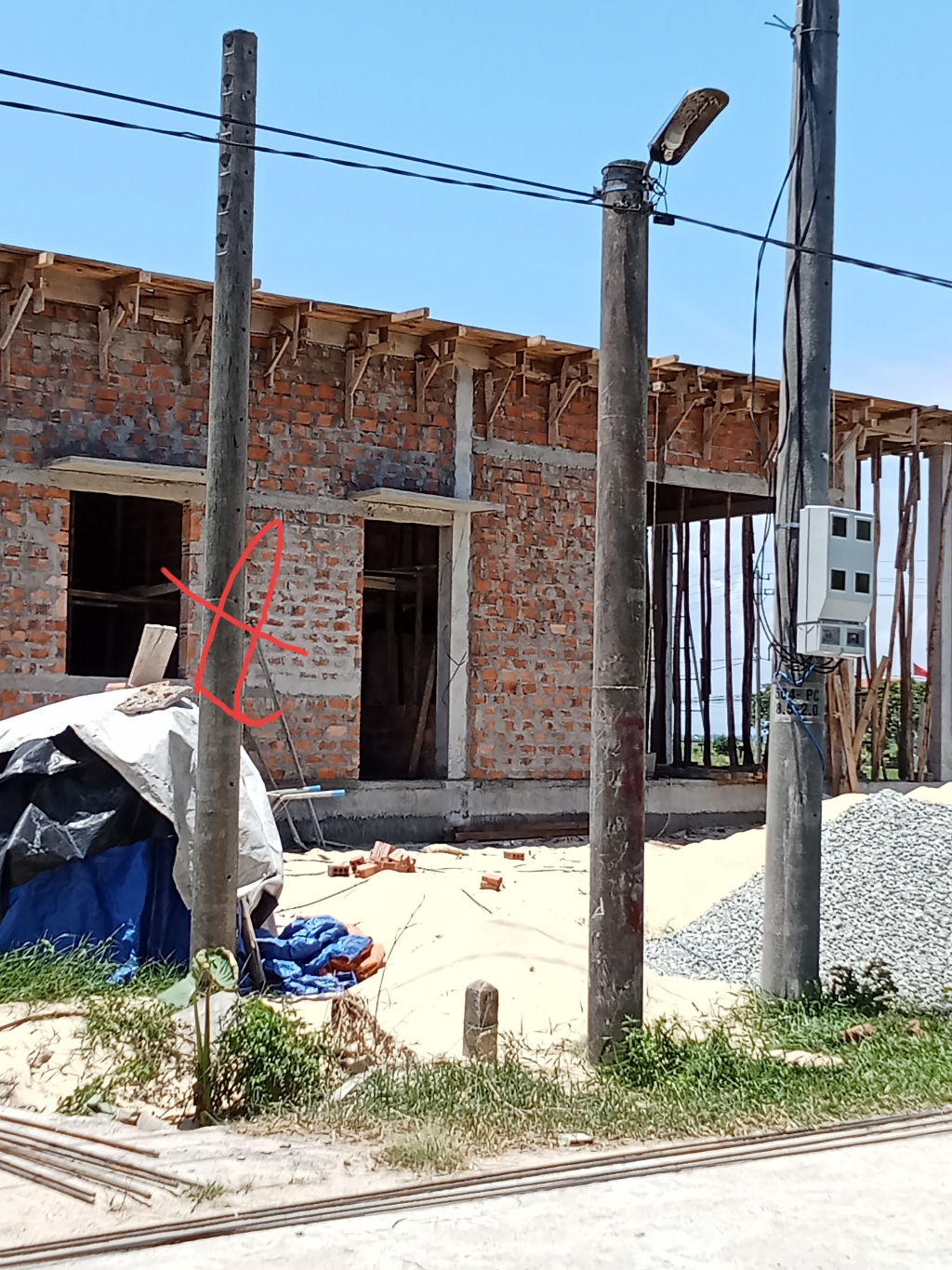 Trụ của nhà mạng nằm trong khu đất nhà ở. Đề nghị di dời để làm nhà (trụ có đánh dấu màu đỏ là trụ muốn di dời). Địa chỉ tại xóm 12, thôn Vĩnh Xương, xã Điền Môn, huyện Phong Điền, tỉnh Thừa Thiên Huế.