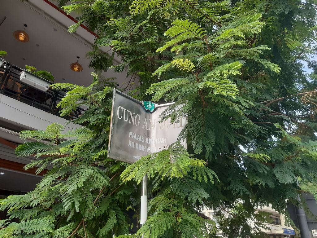 Tấm biển chỉ dẫn đến Cung An Định bị cong vênh một thời gian dài cùng tình trạng bị cành cây che khuất khiến tấm biển mất đi tác dụng. Đây là tình trạng của tấm biển chỉ dẫn nằm trên vỉa hè gần số 106 đường Nguyễn Huệ, TP Huế. Thiết nghĩ, cần khắc phục tình trạng trên để đảm bảo mỹ quan đô thị và góp phần cho biển chỉ dẫn có thể phát huy được tác dụng chỉ đường cho du khách. Xin cảm ơn.