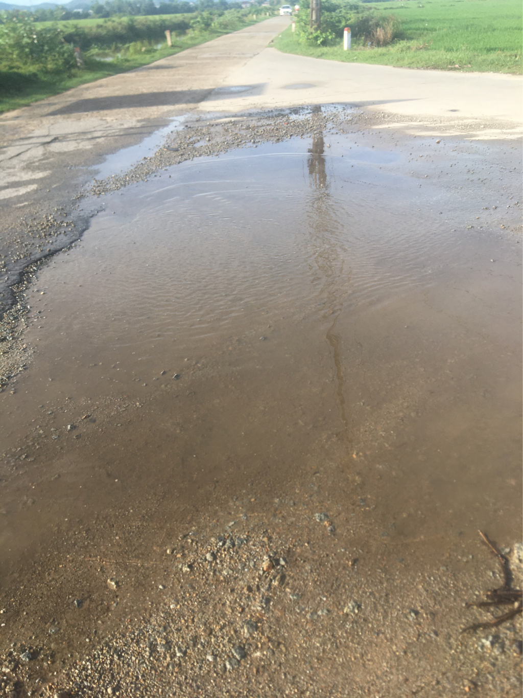 Ngay khúc cua không có nhựa (xi măng), thật sự như là một ổ gà, xin cấp trên trải nhựa (xi măng) để lấp đoạn đó ạ!