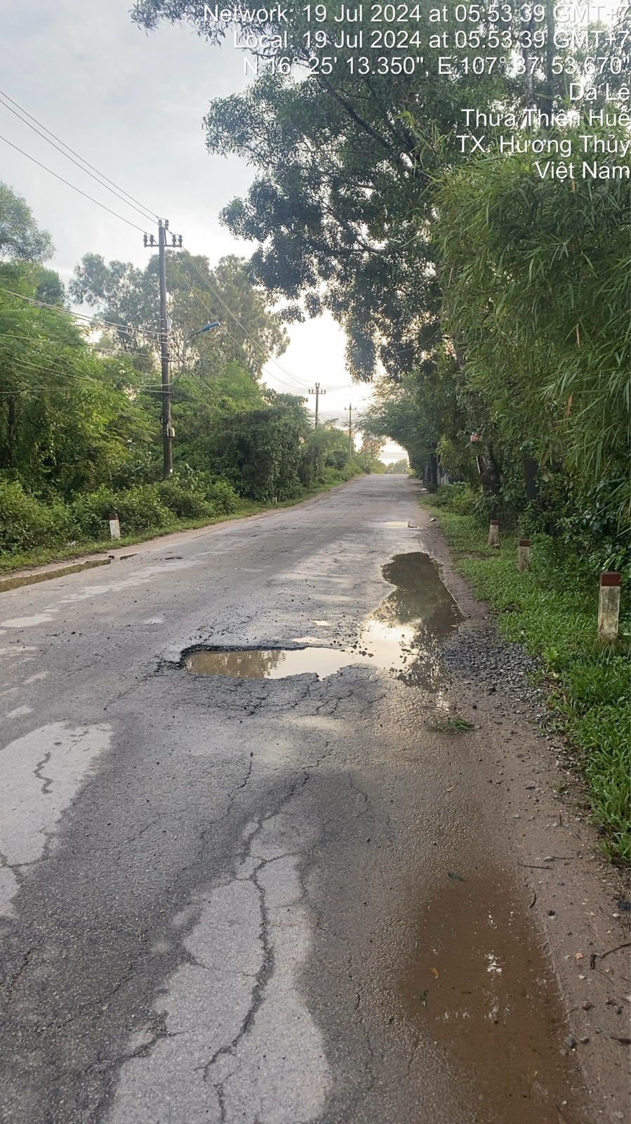 Phản ánh tuyến đường Dạ Lê của phường Thuỷ Phương, Thị xã Hương Thuỷ, Tỉnh Thừa Thiên Huế bị hư hỏng nhiều vị trí từ đoạn cầu Ông Bang đến nhà máy Gạch Tuy Nen số 3