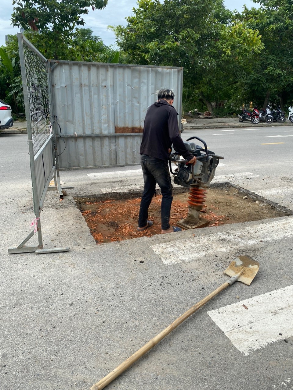 Đơn vị thi công của Ban Dự án cải thiện môi trường nước thi công sử dụng vật liệu đất gạch để hoàn trả mặt đường không đúng yêu cầu kỹ thuật ở đường Hoàng Quốc Việt. Tại vị trí gần ngã ba Phan Anh và Hòng Quốc Việt. Đề nghị các cơ quan chức năng xử lý.