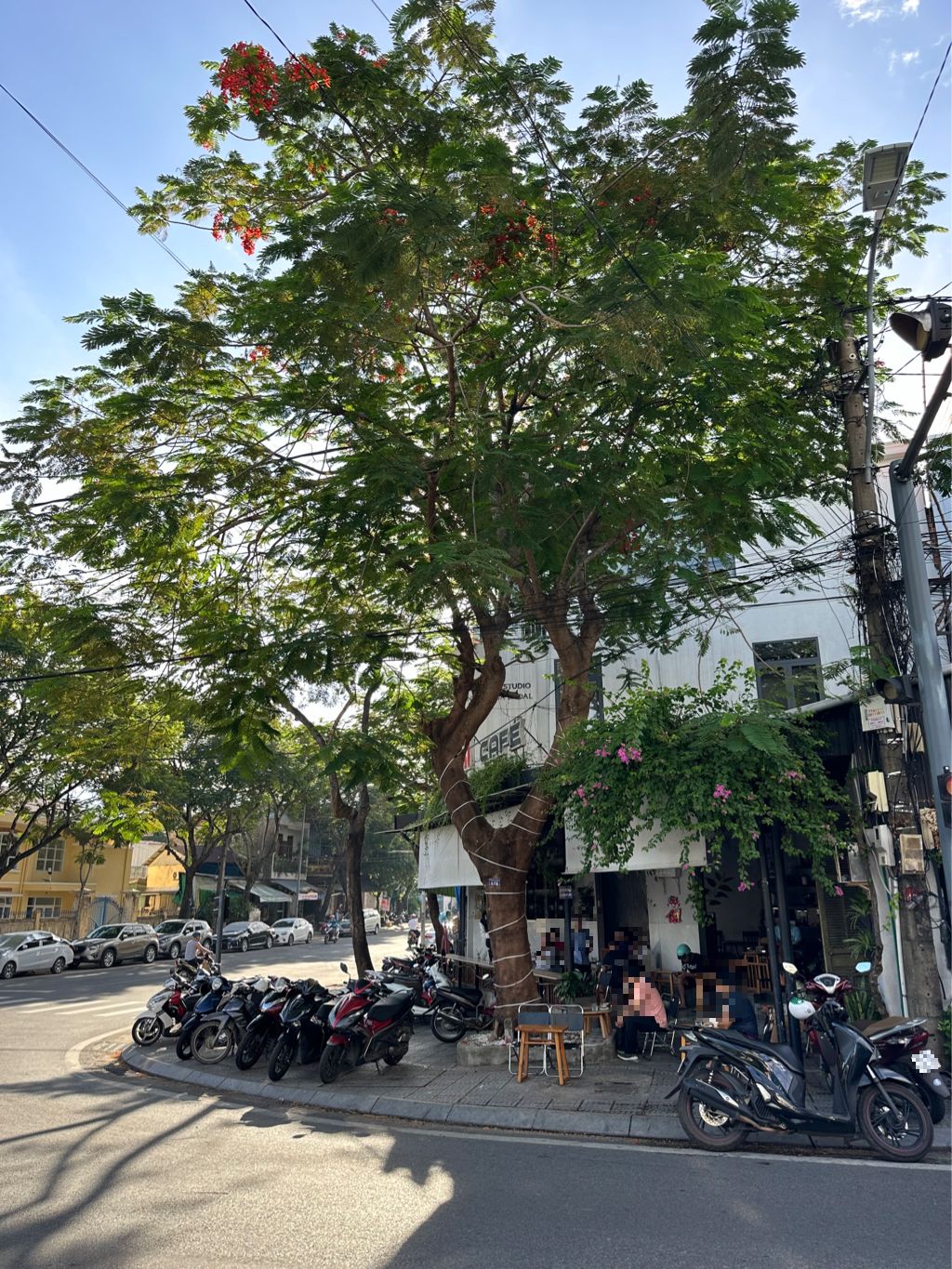 Trung tâm đã cắt mé cây phượng tại ngã tư Đào Tấn và Phan Bội Châu; đính kèm hình ảnh.