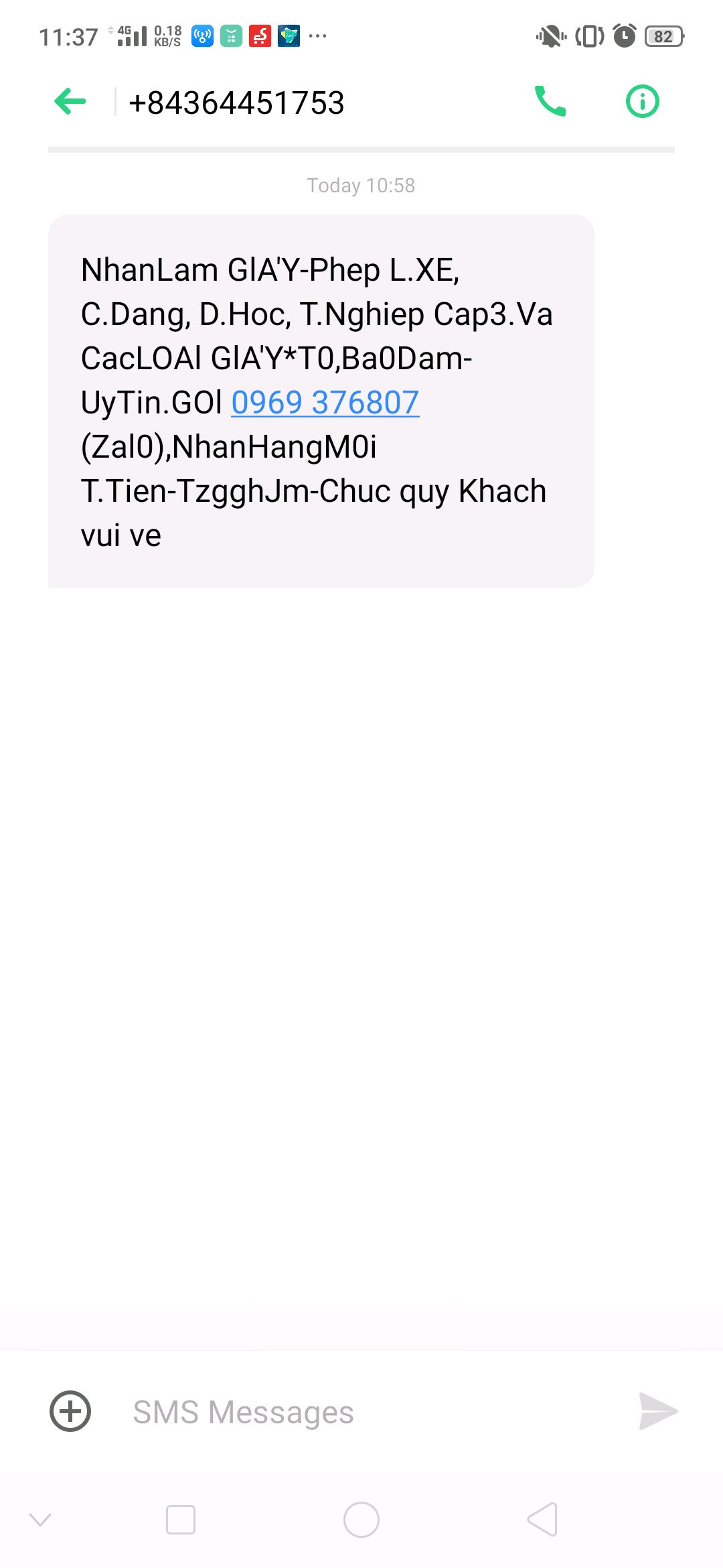 - Tin nhắn với mục đích lừa đảo, quấy rối hoặc phát tán virus máy tính, phần mềm gây hại hoặc gửi các thông tin độc hại như lừa đảo, chống phá Nhà nước, kích động bạo lực.