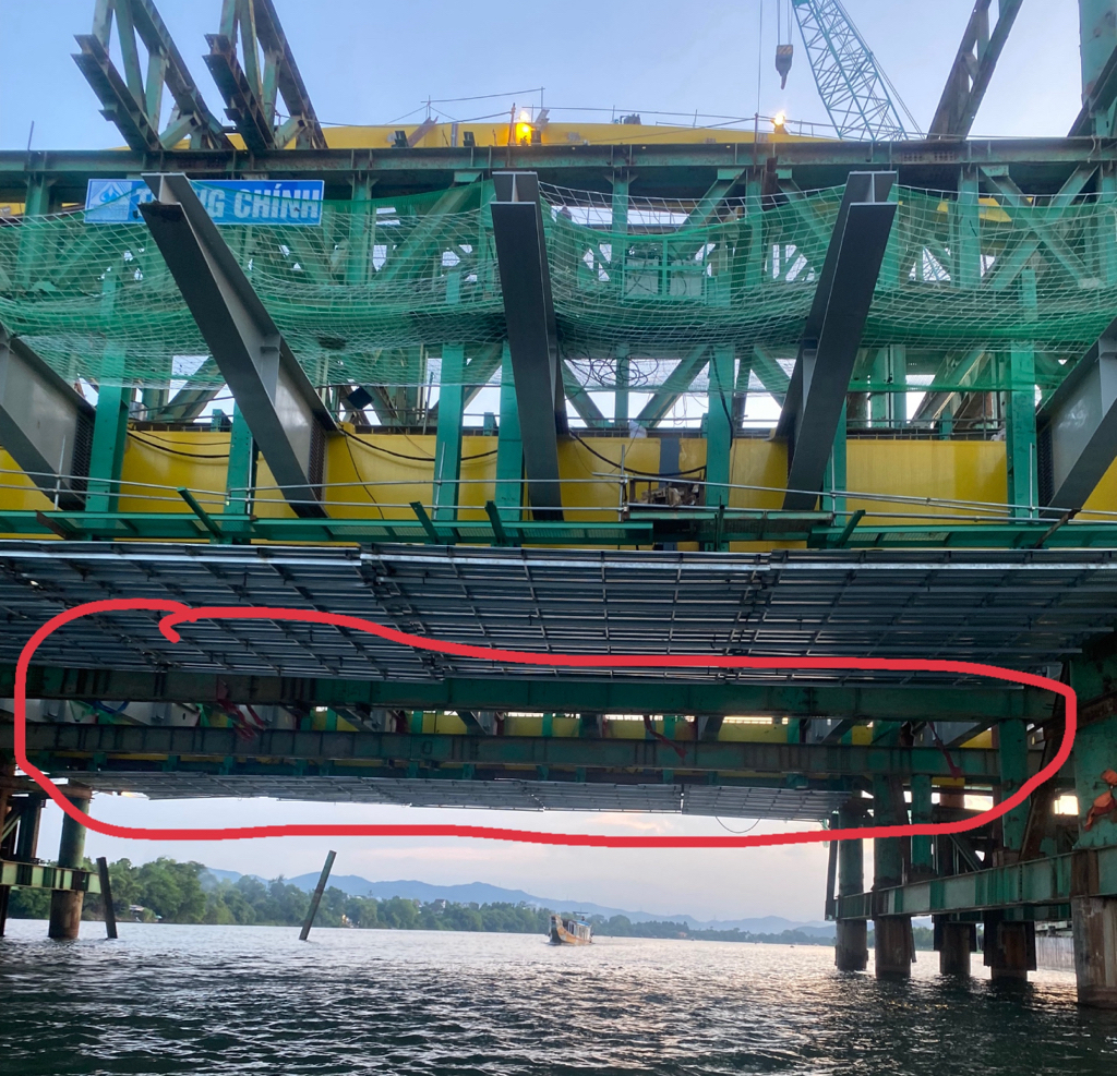 Vị trí được phản ánh thuộc dự án Đường Nguyễn Hoàng và cầu vượt sông Hương do Ban QLDA Đầu tư xây dựng công trình giao thông làm chủ đầu tư. Sau khi nhận được phản ánh, cán bộ TVGS của Ban đã phối hợp với đơn vị thi công kịp thời xử lý đảm bảo an toàn cho người dân cũng như du khách đi thuyền bên dưới.