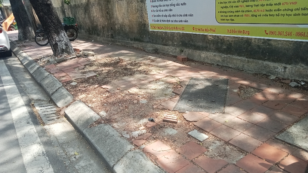 Tuy nhiên, đoạn từ Đặng Thái Thân đến Triệu Quang Phục, phường Thuận Hòa hiện trạng vỉa hè đã hư hỏng nặng, nhiều chỗ đã bong tróc gạch.