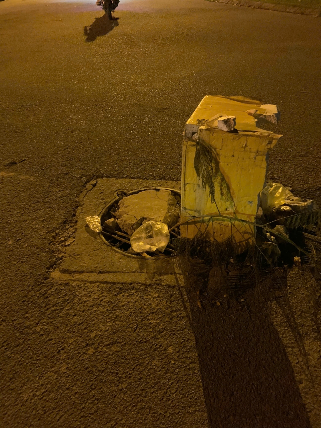 Ảnh chụp 21h30 tối 26/9/2024, nắp hố ga vẫn chưa dc xử lý