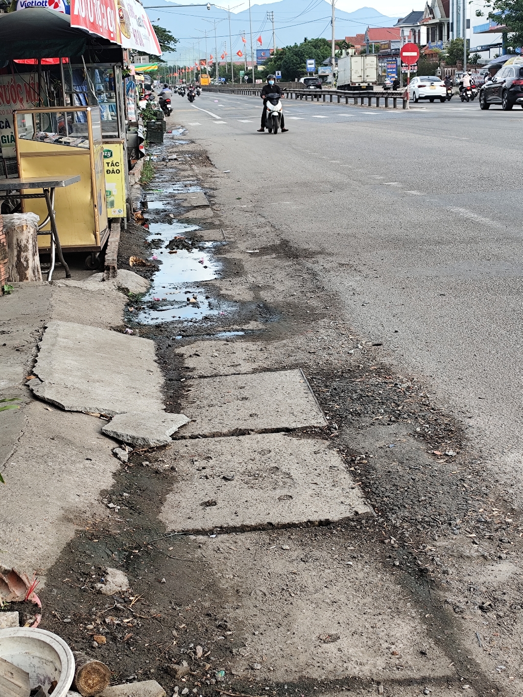 Tại vị trí Km848+800 (P) (bên phải tuyến, ngã ba La Sơn) Quốc lộ 1 có hệ thống thoát nước dọc, tuy nhiên hạ lưu của cống là một rãnh rất nhỏ, bị tắc nghẽn thường xuyên, do đó việc thoát nước trên Quốc lộ 1 không đảm bảo. Nguyên nhân là quá trình thực hiện dự án không có mặt bằng để đấu nối các hệ thống thoát nước. Hạ lưu bị bồi tắc. Hiện nay Công nhân Công ty TNHH Trùng Phương đang lắp đặt tạm ống thoát nước, khơi thông cống dọc. Về lâu dài, Sở GTVT sẽ làm việc với UBND huyện Phú Lộc, xã Lộc Sơn để giải quyết từng vị trí thoát nước, đảm bảo có hạ lưu thoát nước. (có hình ảnh đính kèm)