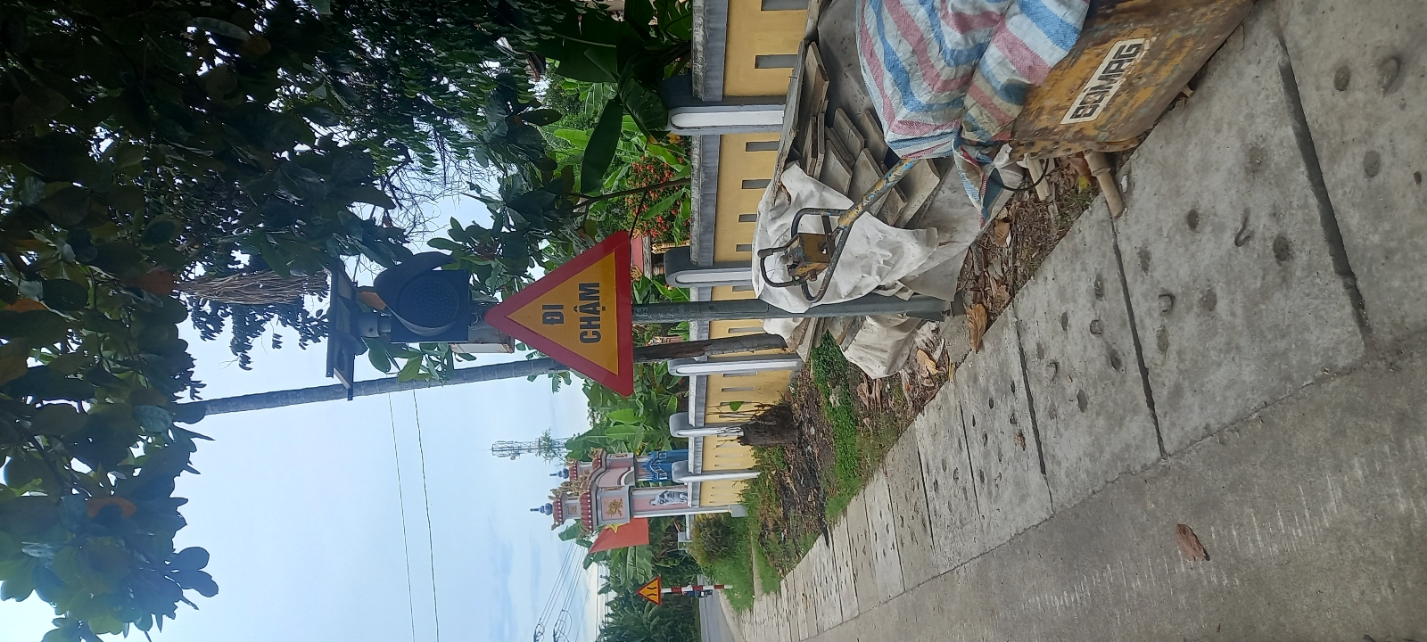 Tại vị trí Km7+350 (P) Quốc lộ 49 trước cầu Lưu Khánh có đèn chớp vàng bị hư hỏng. Cột đèn này được xây dựng từ rất lâu đến nay đã bị hư hỏng nặng, muốn sửa chữa triệt để phải thay mới các thiết bị, kinh phí sửa chữa lớn. Đồng thời các đèn vàng nhấp nháy này ít phát huy tác dụng, hiệu quả (mùa mưa thì không đủ năng lượng để phát sáng, mùa nắng thì khó nhận biết do dễ nhầm lẫn với đèn đường). Vì vậy, Cục Đường bộ Việt Nam đã có chỉ đạo đối với các tuyến Quốc lộ có các cụm đèn vàng nhấp nháy đã bị hư hỏng thì gắn thêm biển cảnh báo W.245 " ĐI CHẬM" dưới đèn để cảnh báo cho các phương tiện giảm tốc độ. Văn phòng QLĐB II.5 đã chỉ đạo đơn vị bảo dưỡng thường xuyên tuyến đường gắn thêm biển cảnh báo W.245 " ĐI CHẬM" dưới cụm đèn này từ năm 2023 để cảnh báo cho các phương tiện giảm tốc độ khi đi qua đoạn đường này.
