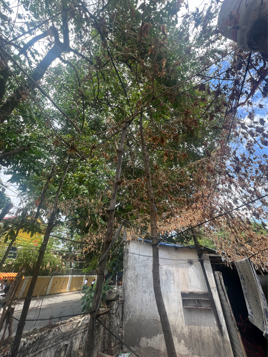 Các cây này thuộc khu tập thể này do Trung tâm Bảo tồn Di tích Cố đô Huế quản lý, hiện đang thực hiện dự án Di dời dân cư, giải phóng mặt bằng khu vực I hệ thống di tích Kinh thành Huế thuộc quần thể di tích Cố đô Huế - khu vực Xiển Võ Từ thuộc phường Đông Ba, thành phố Huế. UBND phường đã có Công văn đền với Trung tâm Bảo tồn Di tích Cố đô Huế về nội dung phản ánh và đề nghị kiểm tra, rà soát có phương án đảm bảo an toàn đối với nhà cửa và cây xanh trong thời tiết diễn biến phức tạp và mùa mưa bão sắp đến. Trung tâm đã tiến hành cắt tỉa cành nhánh, hạ thấp chiều cao các cây xanh, tránh nguy cơ gãy đổ vào công trình khi có mưa bão. (đính kèm công văn).