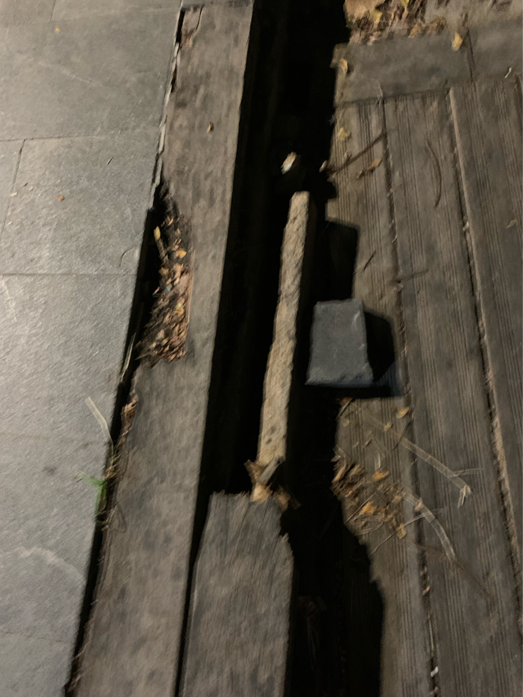 Lối lên xuống cầu Bán Nguyệt bị hỏng, đề nghị cơ quan chức năng xử lý. Hình ảnh ghi lại lúc 19h25 ngày 14/9/2024