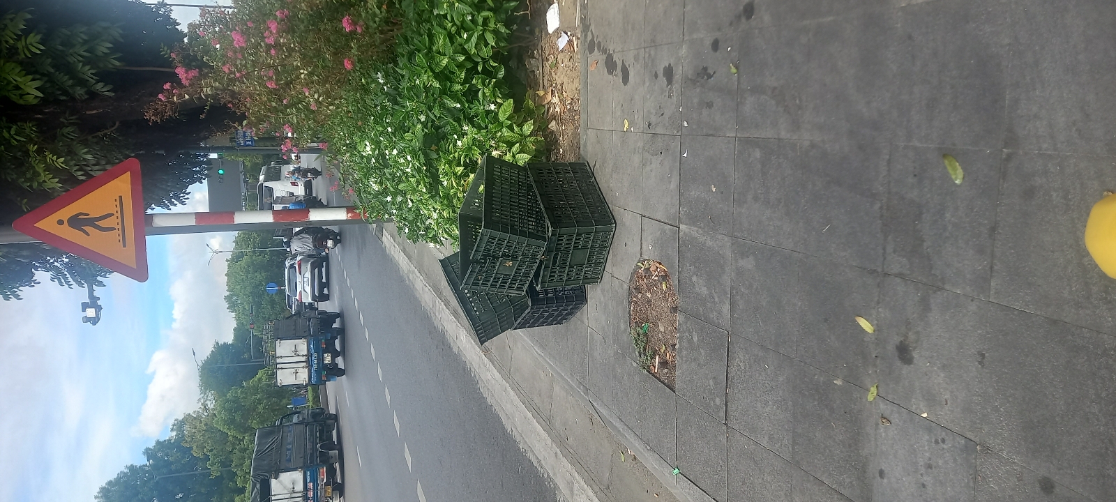 Tại vị trí này trước đây là cột điện của ngành điện lực nên khi thi công chỉnh trang mở rộng đường Hà Nội không được lát vỉa hè. Sau khi tháo dỡ cột điện đi để lại lỗ hình tròn đường kính khoảng 0.4m và các con bu lông chân cột. Trung tâm đã yêu cầu đơn vị quản lý vỉa hè xử lý tại vị trí trên.