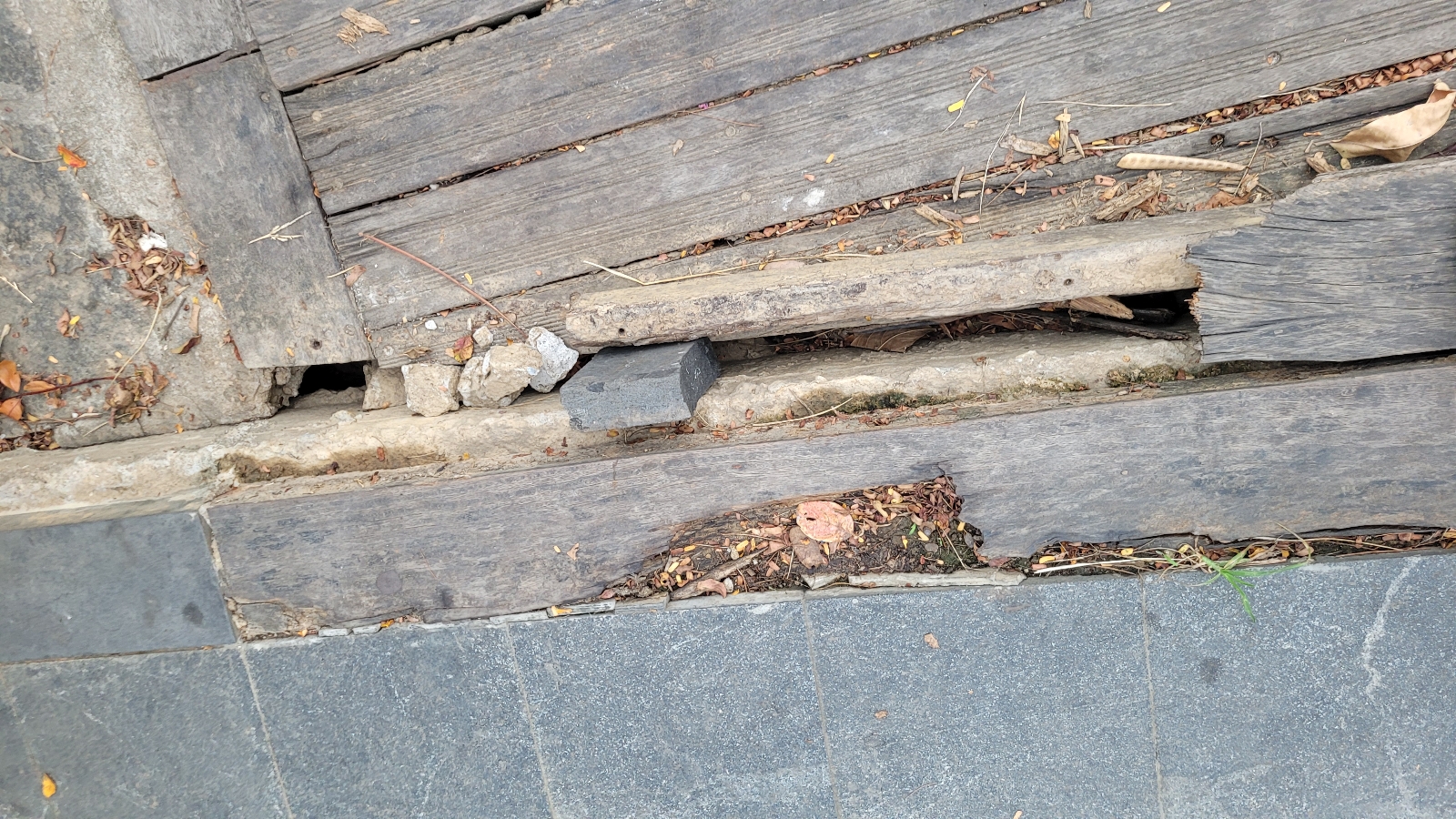 Cầu Bán Nguyệt ở sông Hương xuống cấp nghiêm trọng, rất dễ gây nguy hiểm cho trẻ em và du khách khi chơi ở đây. Kiến nghị cơ quan chức năng kiểm tra, sớm sửa chữa. Hình ảnh chụp lúc 17h ngày 15.09.2024.
