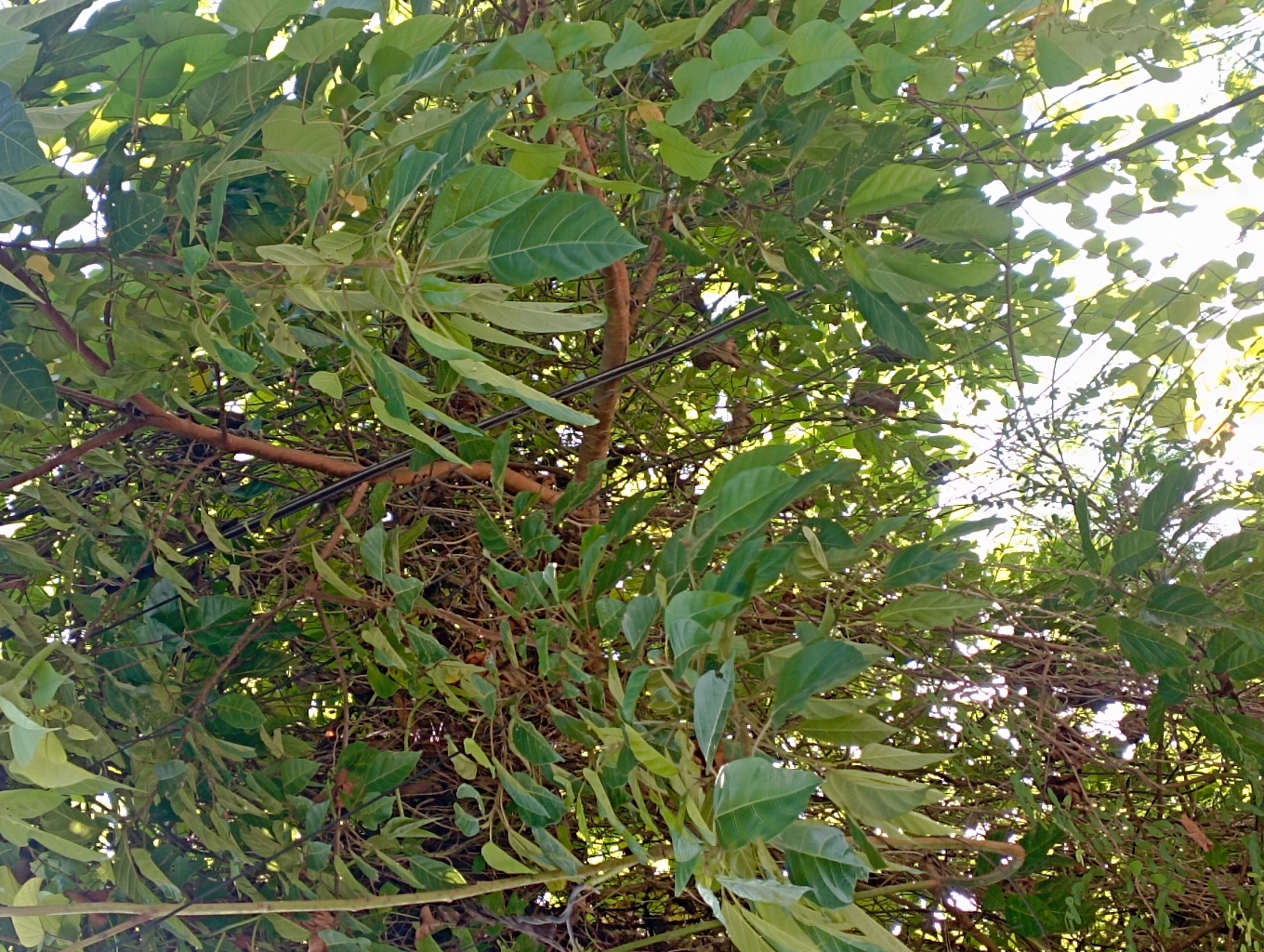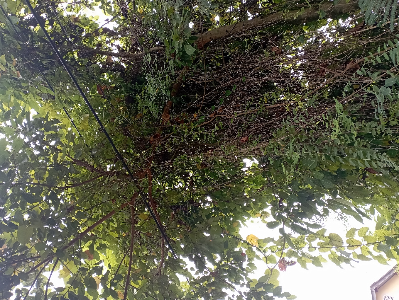 Cành cây vẫn còn đè lên dây điện, ko biết các cán bộ đã xử lý chổ nào . Cành sung đối diện với nhà trẻ măng non vẫn đè lên dây điện.
