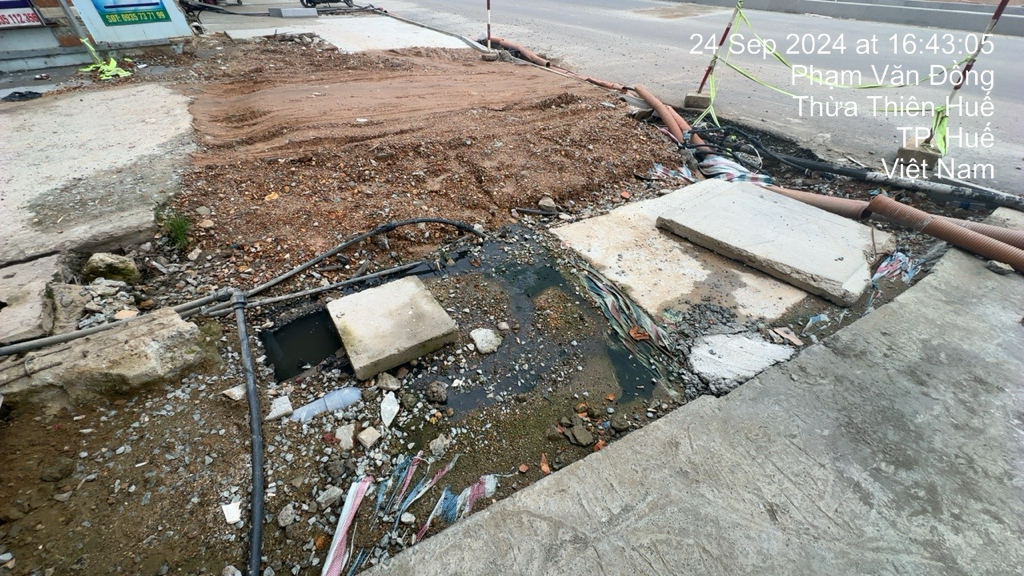Tới thời điểm hiện tại là 13h00 ngày 6/10/2024, hố ga vẫn chưa được thông và nước vẫn còn chảy lênh láng lên phía trên, gây ô nhiễm và mùi hôi thối nồng nặc. Hues vui lòng yêu cầu nhà thầu xử lý lại giúp chúng tôi. Trân trọng cảm ơn