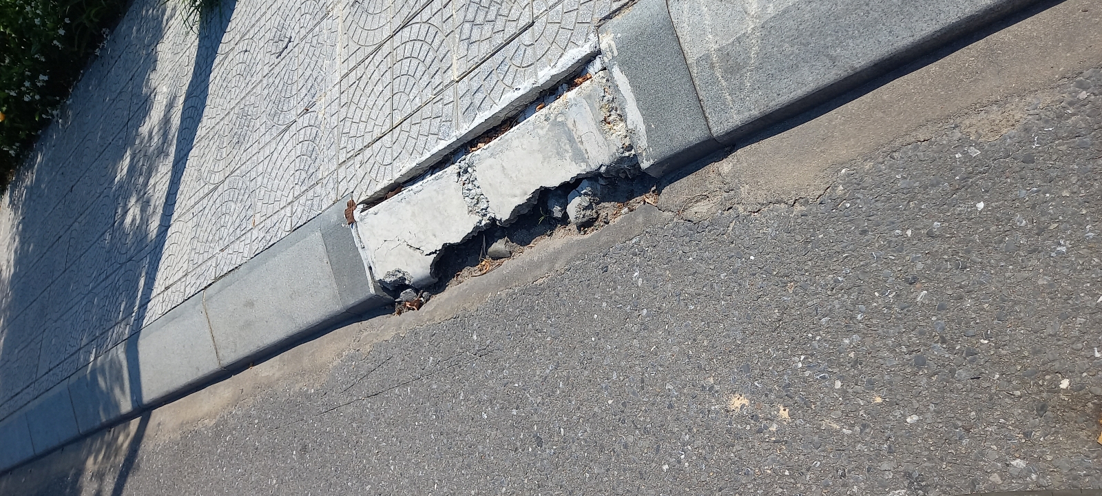 Bó vỉa hè bị hư hỏng ở phía đối diện số 97 Nguyễn Tất Thành. Ảnh chụp lúc 12h ngày 25-9-2024. Xin cảm ơn.
