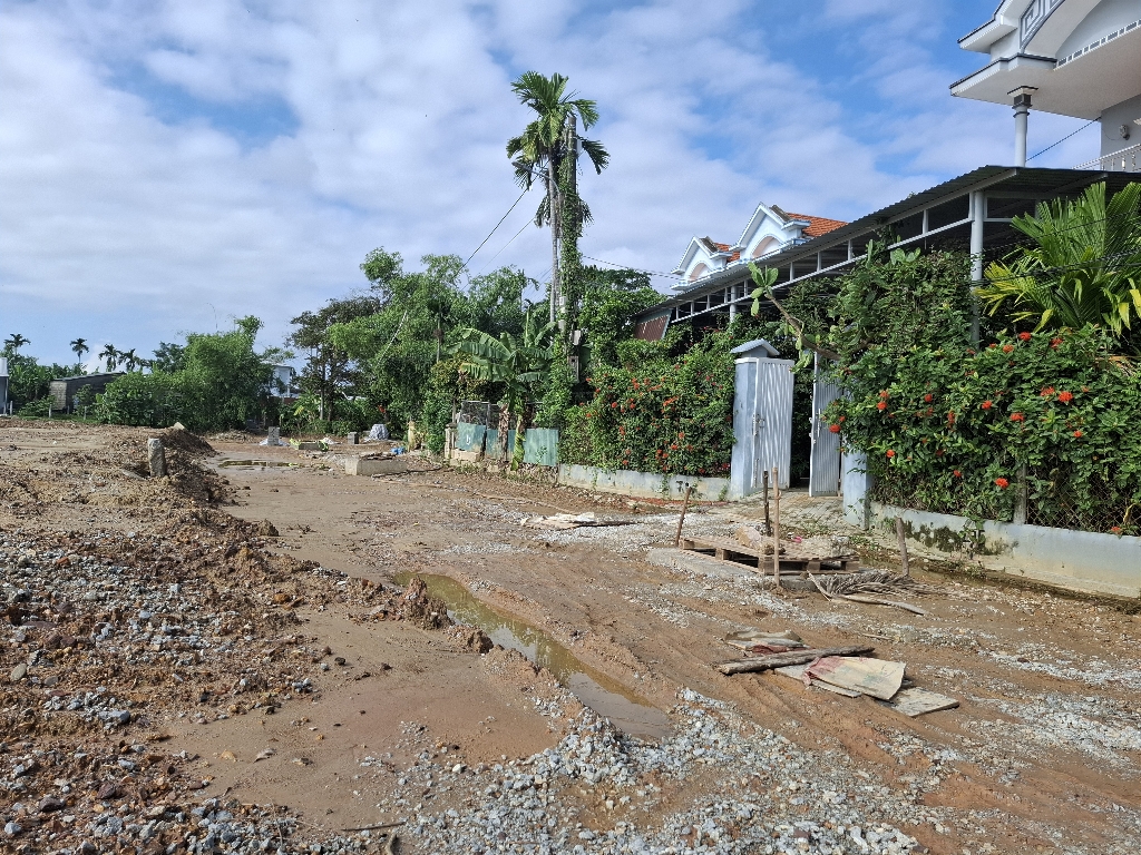 Khu vực phản ánh thuộc tuyến đường số 8 thuộc dự án án HTKT Khu dân cư TDC 09 khu B An Vân Dương. Kết cấu nền đường gồm: Lớp đất cấp phối đầm chặt K95, Lớp đá cấp phối đầm chặt K958, lớp bê tông hoàn thiện.Do thời tiết mưa gió, ngập úng nên quá trình thi công gặp khó khăn, chậm trễ. Dự kiến sẽ hoàn thiện bê tông đường trước ngày 20/10/2024.