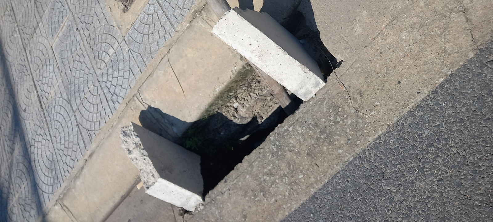 Hai nắp họng thu nước trên đường Nguyễn Tất Thành (đoạn gần cầu vượt thuộc phường Thủy Dương) bị mất. Ảnh chụp lúc 12h ngày 28-9-2024. Kính gửi xử lý