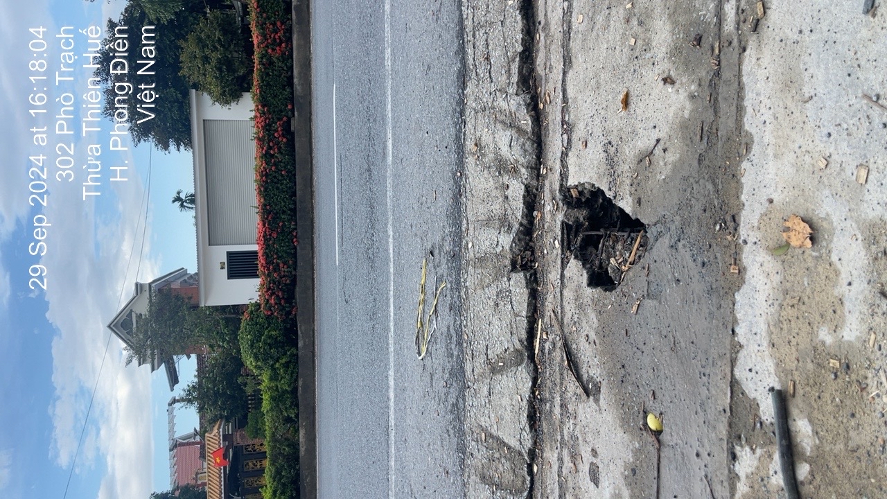 Tại đoạn đường quốc lộ 1A đoạn trước nhà 304 Đường Phò Trạch, thị trấn Phong Điền, huyện Phong Điền, nắp cống bị hư hỏng nặng, lỗ bể rộng hơn 20 cm rất nguy hiển cho người và phương tiện tham gia giao thông. Kính mong cơ quan chức năng kiểm tra, xử lý.