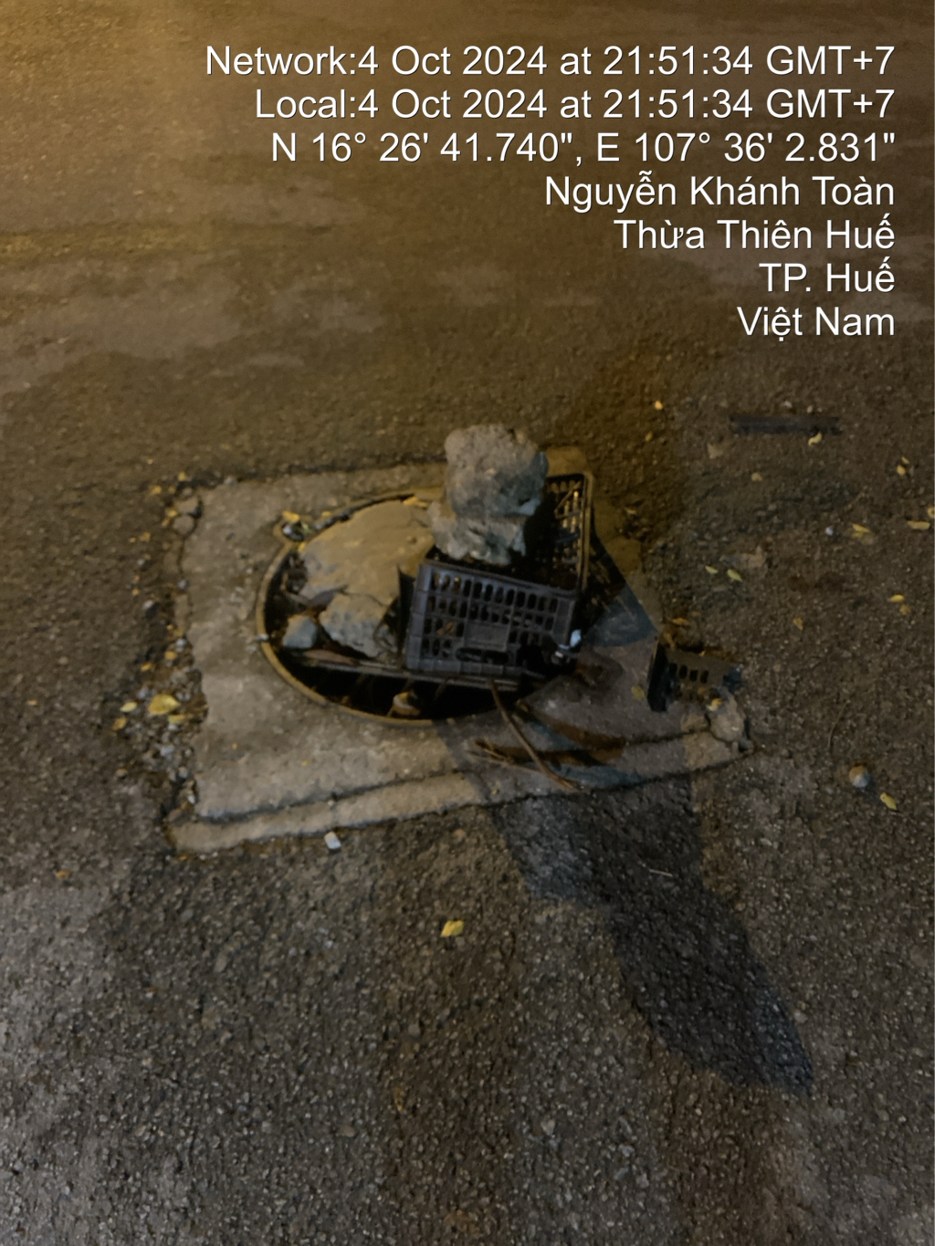 Nắp hố ga hỏng nguy cơ sụp hố và tai nạn giao thông tại 40 Nguyễn Khánh Toàn, phản ảnh đã gửi 1 lần nhưng sau khi chưa hết thời gian xử lý nắp mới đã hỏng. Nắp không đúng chuẩn nắp chịu lực theo hạ tầng giao thông tại vị trí này (Ảnh chụp ngày 04/10/2024).