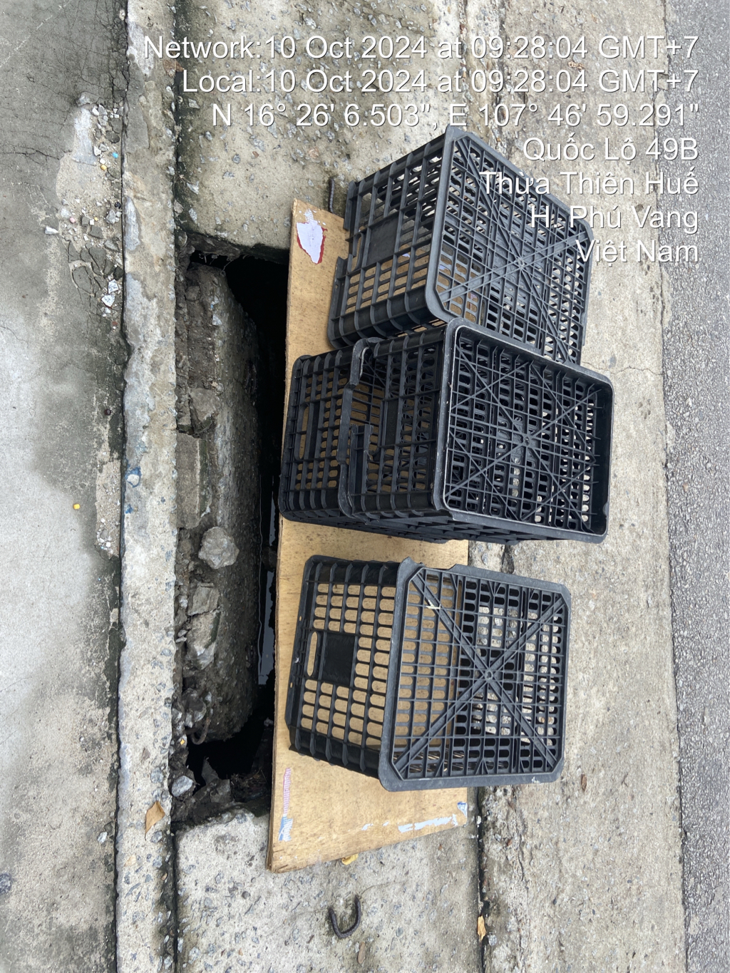 Nắp cống ở trước siêu thị Vicomart Vinh Thanh bị bể, đề xuất sửa lại, tránh gây tai nạn, nguy hiểm tại thôn 3 Vinh Thanh, Phú Vang, Huế. Ảnh chụp ngày 10/10/2024. Kính mong cơ quan chức năng kiểm tra, xử lý.