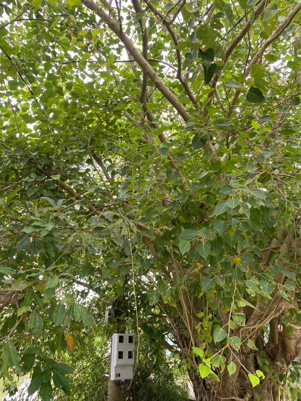 Cây xanh cao to che lấp cột điện gây nguy hiểm cho mùa mưa bão sắp đến tại địa chỉ ngã tư xóm 3, làng Liễu Cốc Hạ, xã Hương Toàn, Thị xã Hương Trà, Thành phố Huế. Kiến nghị xử lý cắt tỉa, cưa hạ thấp cây.