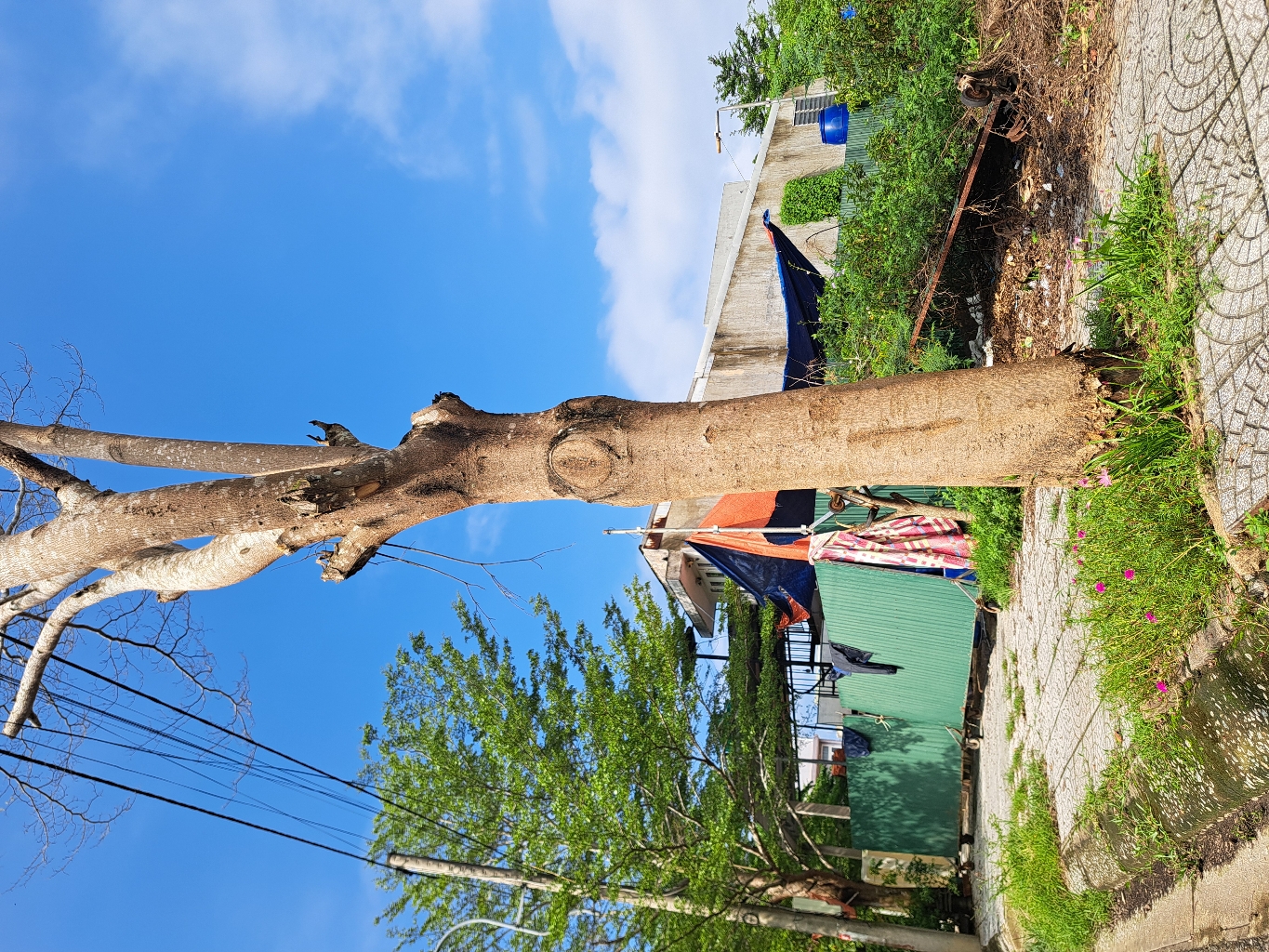 Cây xanh rất to đã chết, dễ đổ ngã trước mặt nhà số Lô 13 LK4, khu quy hoạch Hương An, TDP Thanh Chữ, phường Hương An, Tp Huế. Đề nghị cơ quan chức năng xử lý để tránh đổ ngã trong mùa mưa bão. Ảnh chụp vào lúc 9 giờ 00, ngày 12/10/2024.
