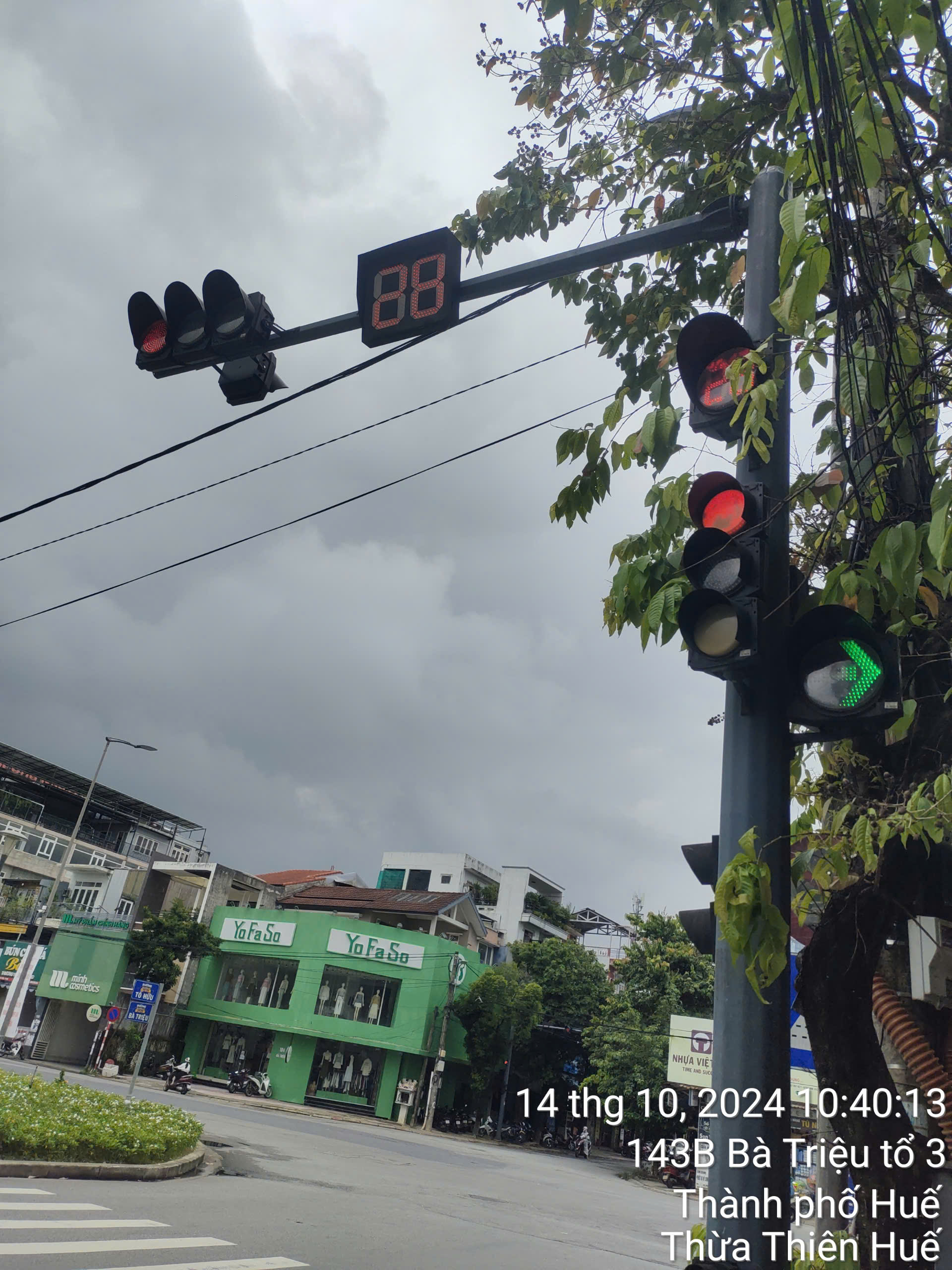Đoạn ngã 4 Tố Hữu và Bà Triệu đèn tín hiệu giao thông bị hư, màu xanh thì tốt còn màu đỏ không hiển thị, ảnh được chụp vào lúc 11h12 ngày 13/10/2024. Kinh mong cơ quan có thẩm quyền xem xét.