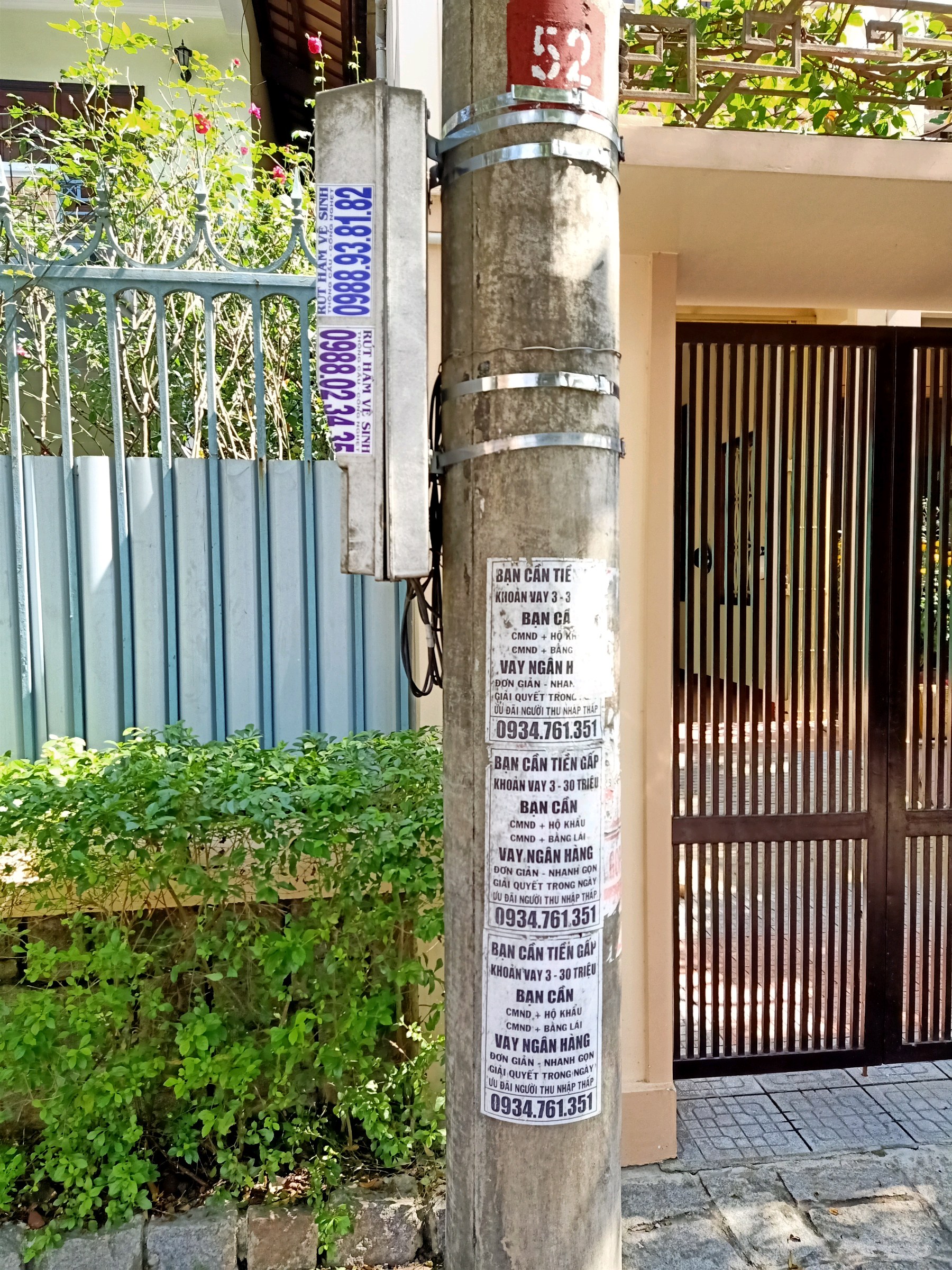 Rác quảng cáo, rao vặt tín dụng đen tại cột điện 205 Phan Bội Châu.