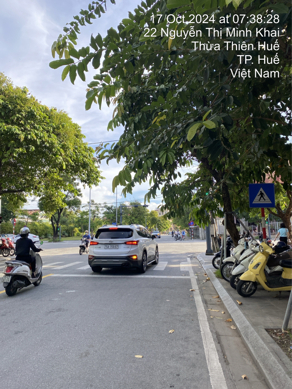 Cây che khuất đèn tín hiệu giao thông tại ngã tư đường Nguyễn Thị Minh Khai - Hùng Vương, TP Huế. Kính gửi cơ quan chức năng xử lý.