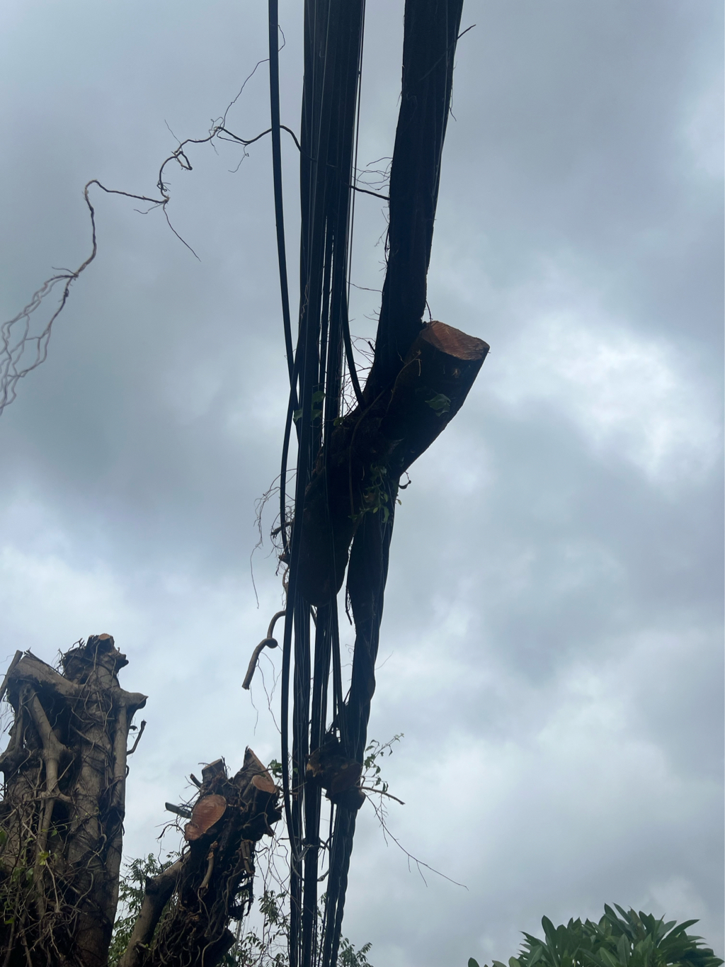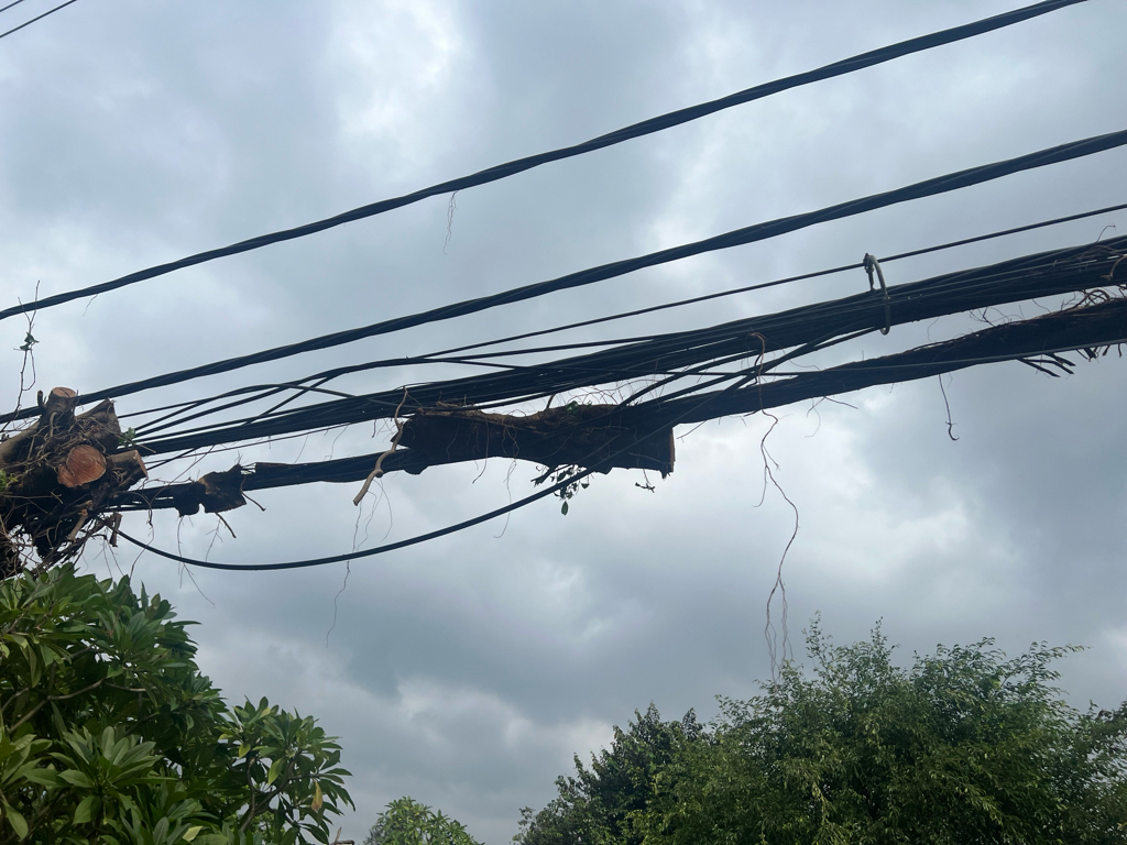 Vẫn còn khúc gỗ to đùng quấn vào dây điện nhìn nguy hiểm lắm ạ