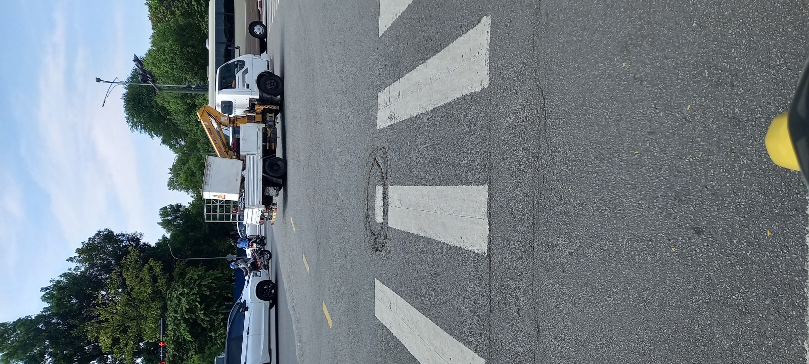 Ở ngã tư Lê Lợi - Hà Nội xuất hiện vết nứt hình tròn. Để tránh mất mỹ quan đô thị và hư hỏng nặng hơn nếu để lâu. Kính gửi cơ quan chức năng sớm khắc phục. Ảnh chụp lúc 15h ngày 25-10-2024.