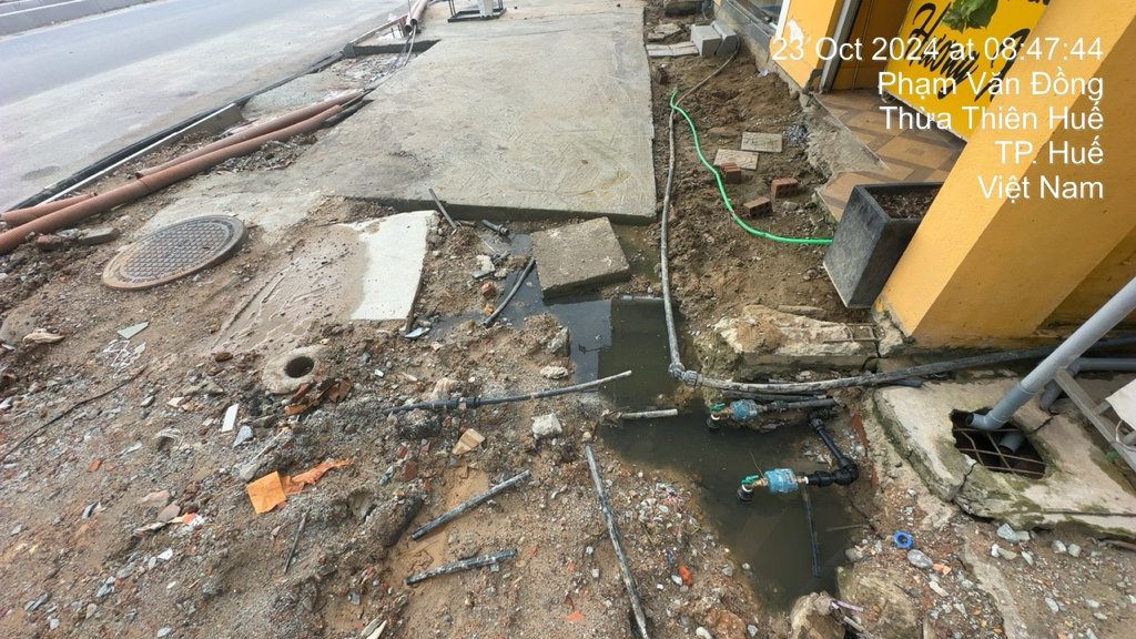 Ban QLDA Cải thiện môi trường nước thành phố Huế đã yêu cầu Nhà thầu xử lý vị trí quý Ông/Bà phản ánh. Ngày 08/11/2024 Nhà thầu đã hoàn thành công tác xử lý. Vậy, Ban QLDA trả lời để quý Ông/Bà được rõ.