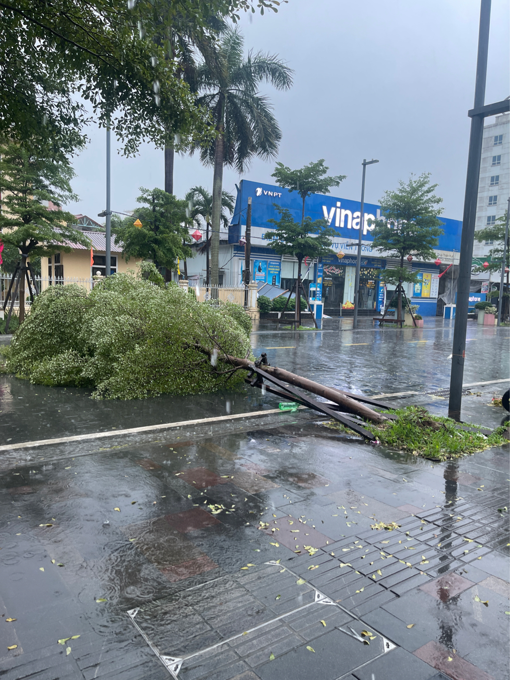 Trung tâm đã cắt mé và chống dựng cây bàng đài loan đổ tại 56 Hai Bà Trưng; đính kèm hình ảnh.