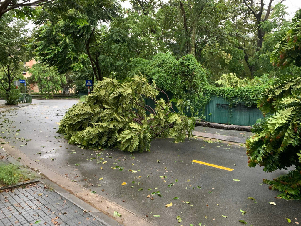 Mặt trước khu biệt thự liền kề The Manor Crown - 62 Tố Hữu (Lô C18 - Đường số 3) phường Xuân Phú 2 cây xanh bị gãy đổ do không cắt tỉa đề phòng trước khi bão đổ bộ. Kính đề nghị khắc phục sớm tránh gây cản trở giao thông trong khu đô thị.