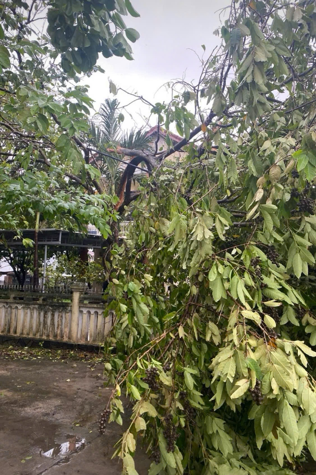 Cơn bão Tramy gây đổ gãy cây đè lên đường điện chiếu sáng tại đường Pha 4, Lại Thế 2, phường Phú Thượng, Tp Huế.