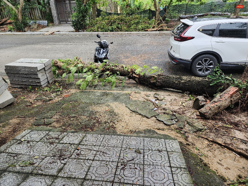 Trung tâm đã chống dựng cây đổ tại 79 Trần Lư; đính kèm hình ảnh.