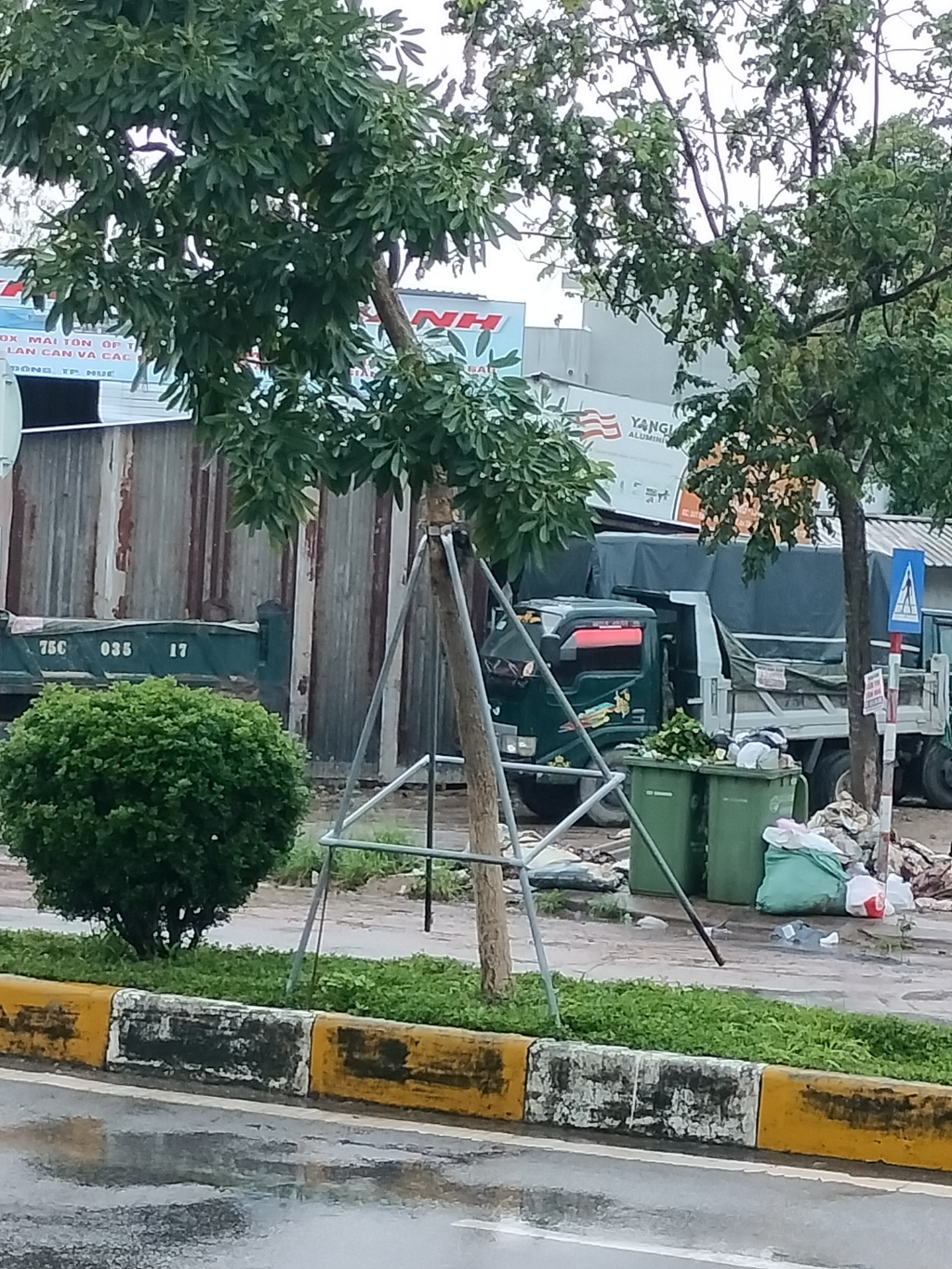 Cây sắp đổ tại vị trí trên giải phân cách giữa đường Âu Lạc, phường An Đông, đối diện nhà E19. Kính gửi cơ quan chức năng xử lý.